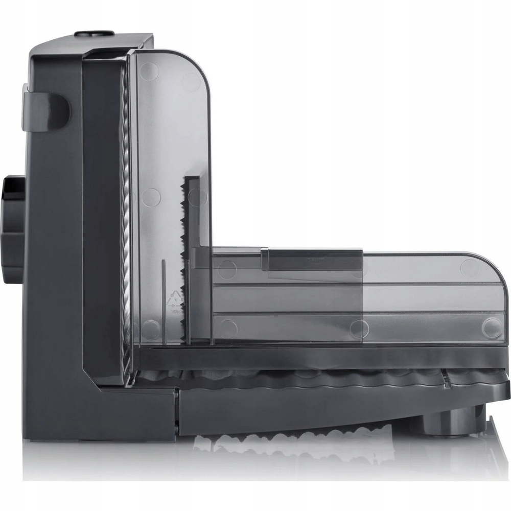 Dotykowy wyłącznik bezpieczeństwa, przesuwany wózek z osłoną na palce oraz uchwyt na pozostałości zapewniają komfort użytkowania.