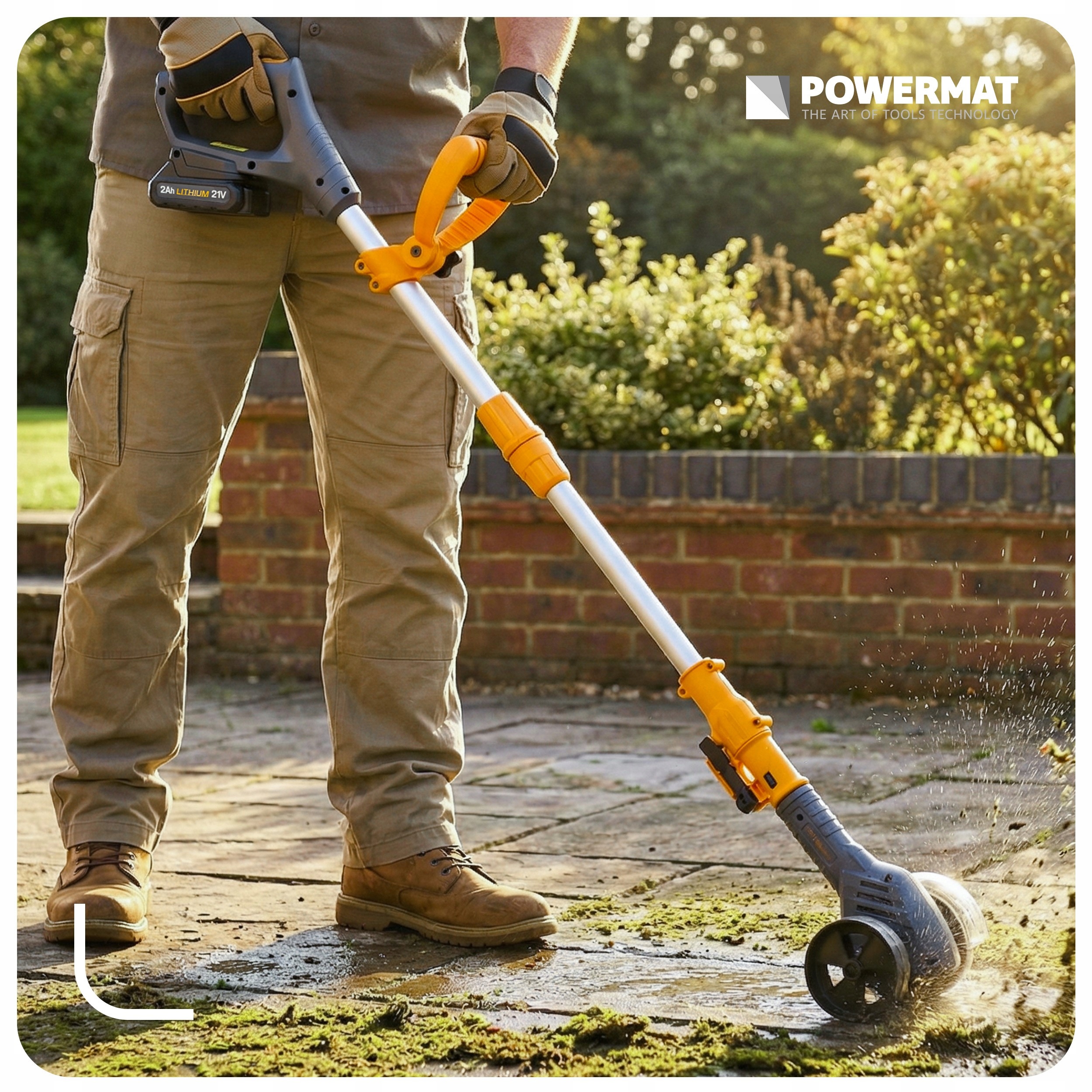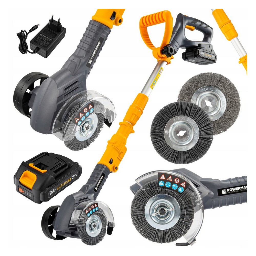 DO TRAWNIKA | AKUMULATOR LI-ION 21V 2AH | SZEROKOŚĆ CIĘCIA 100 MM | 1200 OBR/MIN | WYSIĘGNIK TELESKOPOWY | SZCZOTKA DRUCIANA I NYLONOWA