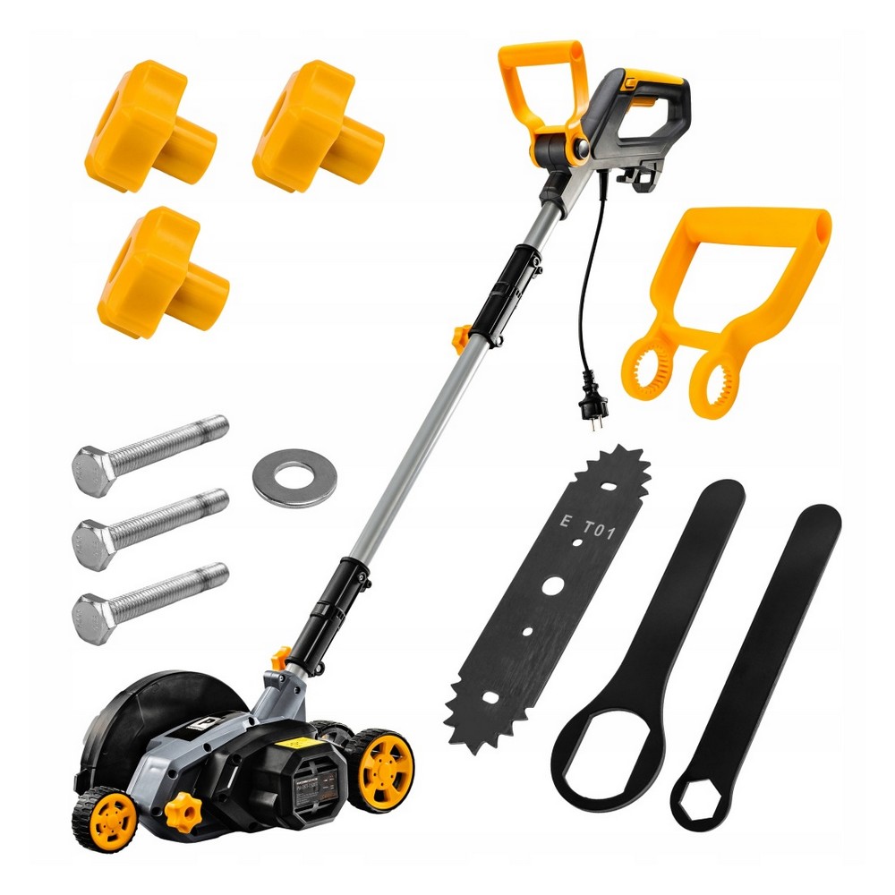 Elektryczna krawędziarka do trawników pozwala precyzyjnie usuwać chwasty, mech i trawę ze szczelin kostki brukowej oraz obrzeży trawnika. Dzięki mocy 1500 W i szerokości roboczej 200 mm pracujesz szybciej i dokładniej, uzyskując równe krawędzie i estetyczne wykończenie nawierzchni bez użycia chemii.