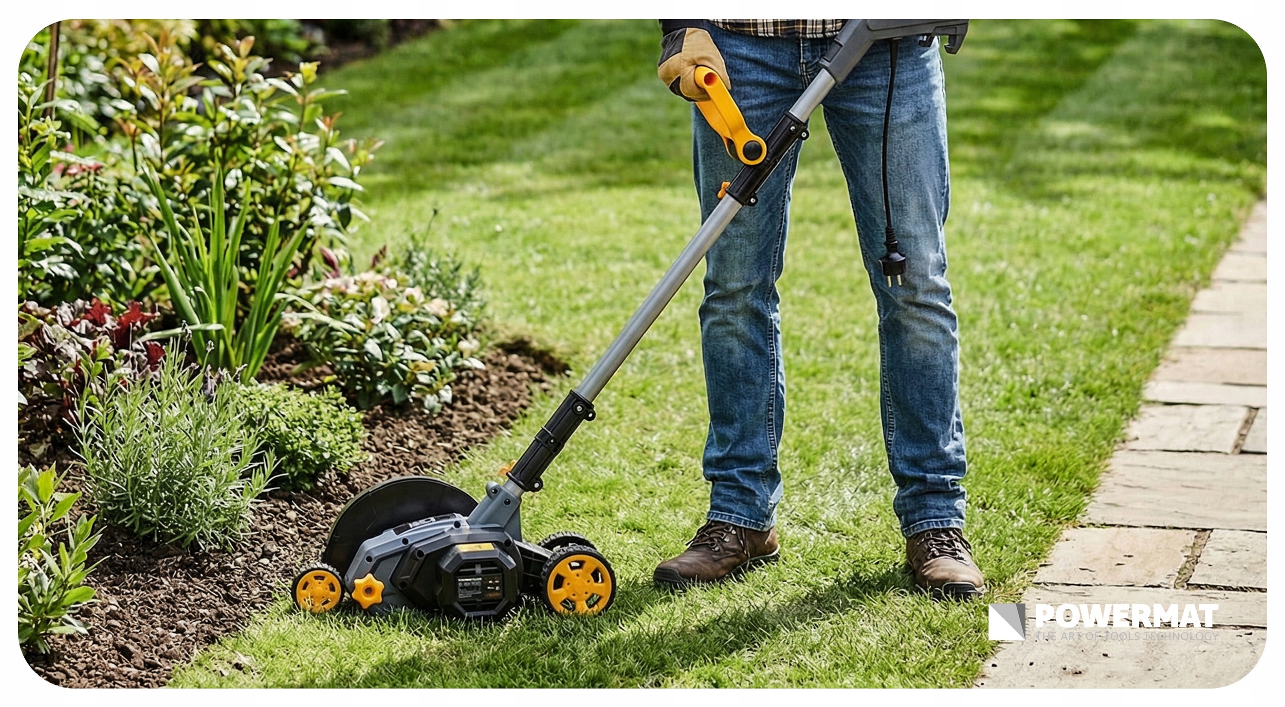 Szerokość robocza 200 mm pozwala Ci szybko prowadzić urządzenie wzdłuż kostki i obrzeży. Otrzymujesz równe, czyste linie przy trawniku i estetyczne wykończenie wokół domu. Efekt widzisz od razu, bez poprawek.