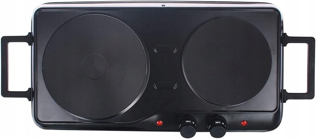 Wielofunkcyjna podwójna płyta kuchenna. Mała i lekka płyta grzewcza idealnie nadaje się do domku ogrodowego, zakwaterowania studenckiego, biura, na kemping, imprezy, w podróży lub jako dodatkowe urządzenie do gotowania w Twojej kuchni.
