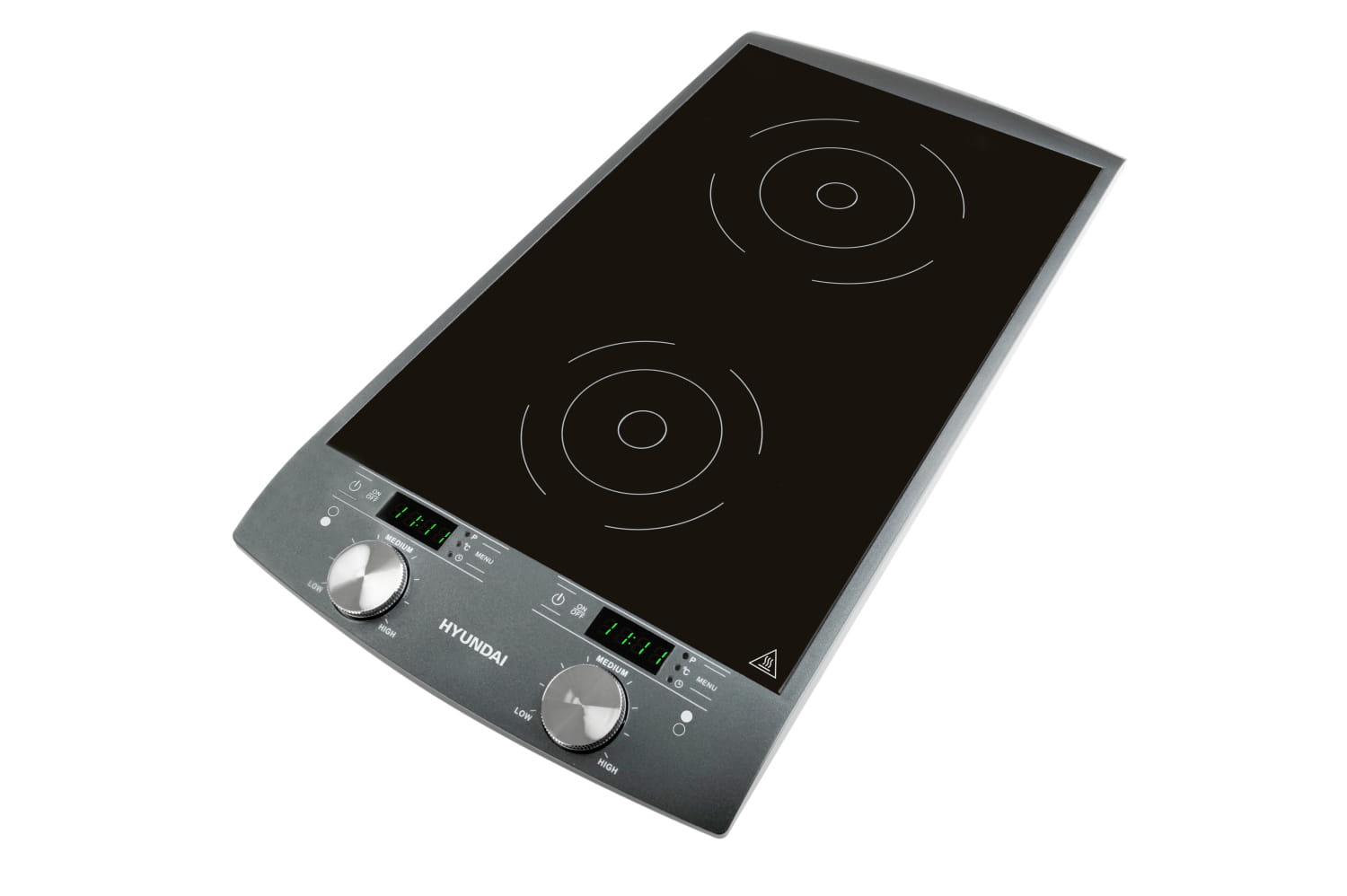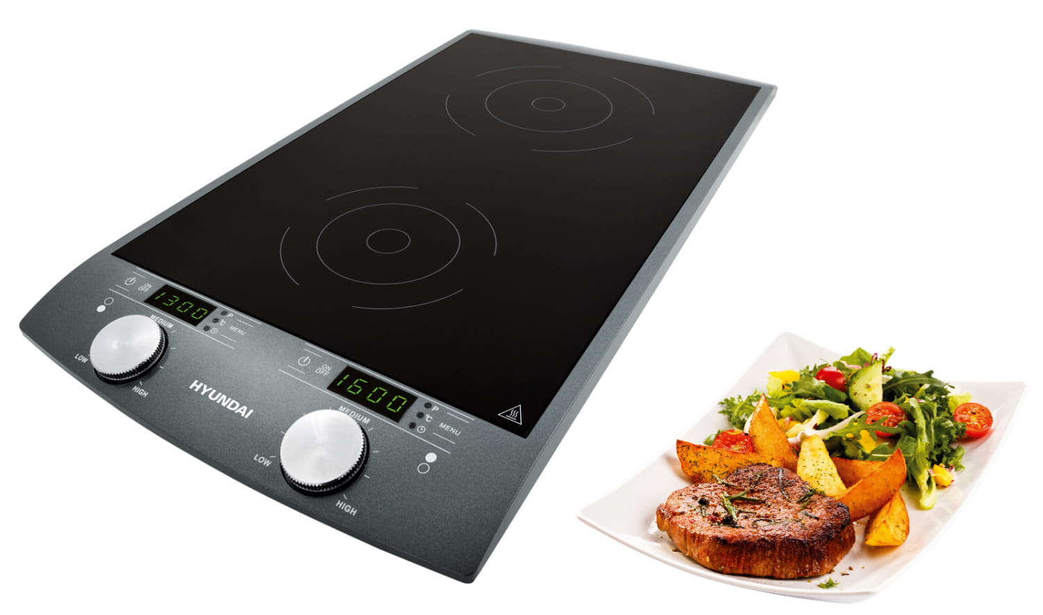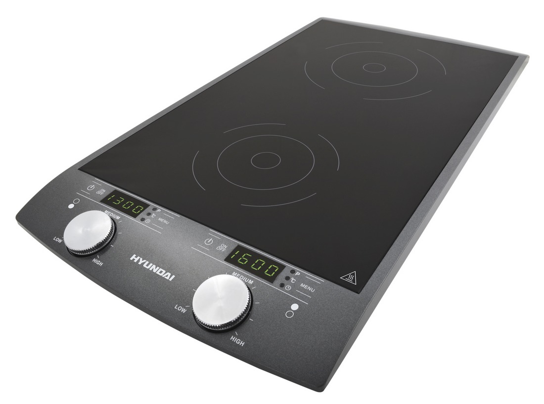 Szybkość, bezpieczeństwo i oszczędność – to są zalety dwupolowej kuchenki indukcyjnej Hyundai. Można ją postawić na blat w kuchni jak również przewozić. Gotowanie na kuchence indukcyjnej to najszybszy, najbardziej ekonomiczny i najbezpieczniejszy sposób gotowania. Wymaganą moc osiąga się niemal natychmiast. Po zdjęciu naczynia ogrzewanie wyłącza się automatycznie. Do ustawiania kuchenki służy intuicyjne pokrętło z wyświetlaczem LED i wskaźnik z kontrolkami.