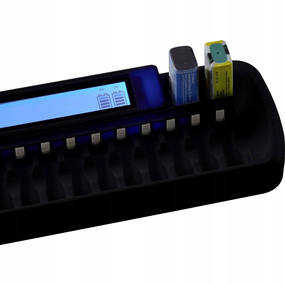Urządzenie umożliwia jednoczesne ładowanie 16 akumulatorów AA lub AAA i dwóch ogniw blokowych 9 V.