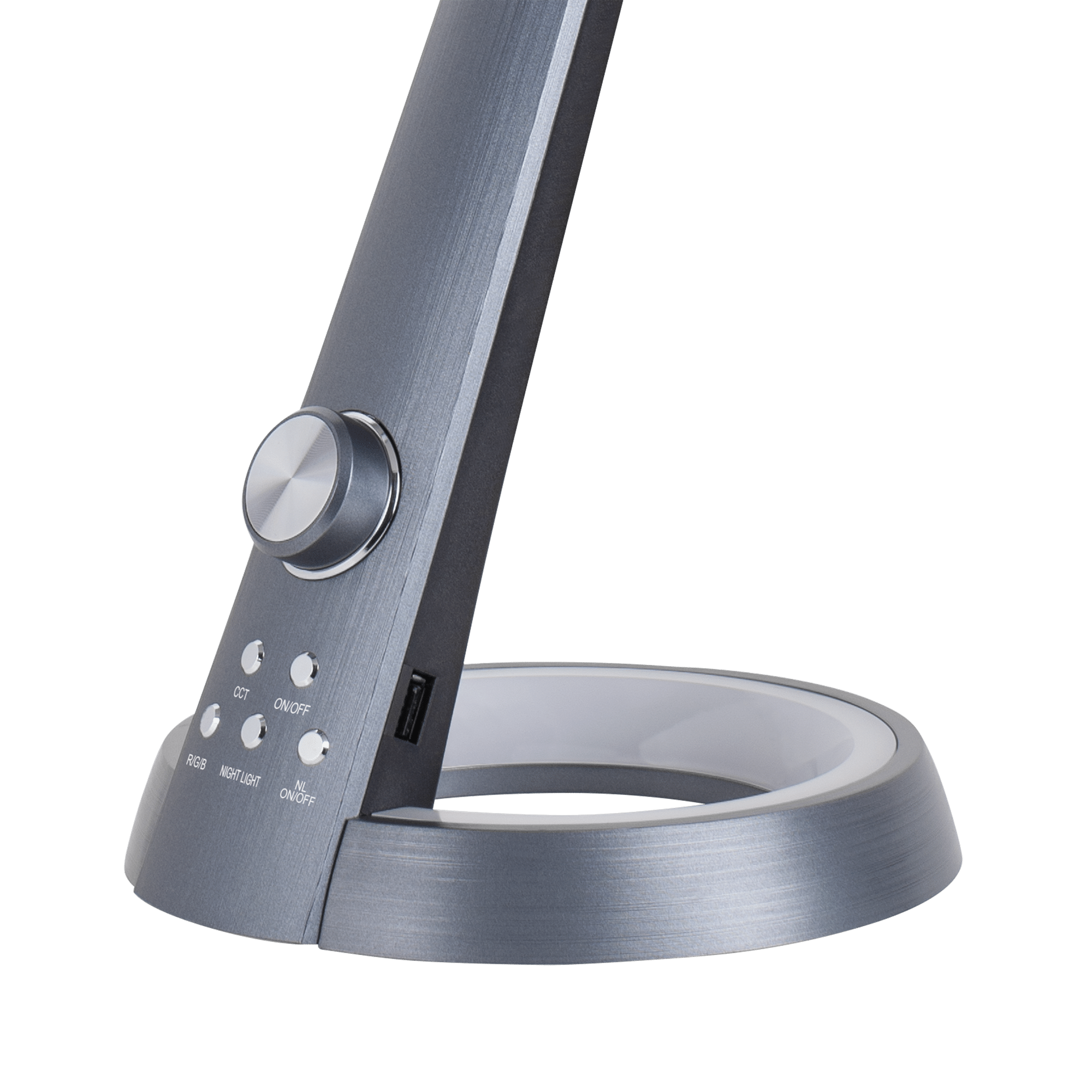 Nowoczesna lampa stołowa odpowiednia do: pokój dzienny, kuchnia, pokój dziecięcy, garaż i warsztat, pracownia. Przyciski dotykowe zapewniają sterowanie funkcjami lampy. Ruchomy reflektor LED umożliwia dopasowanie światła wedle własnego uznania. Stabilna podstawa antypoślizgowa zapobiega ślizganiu się lampy po podłożu.