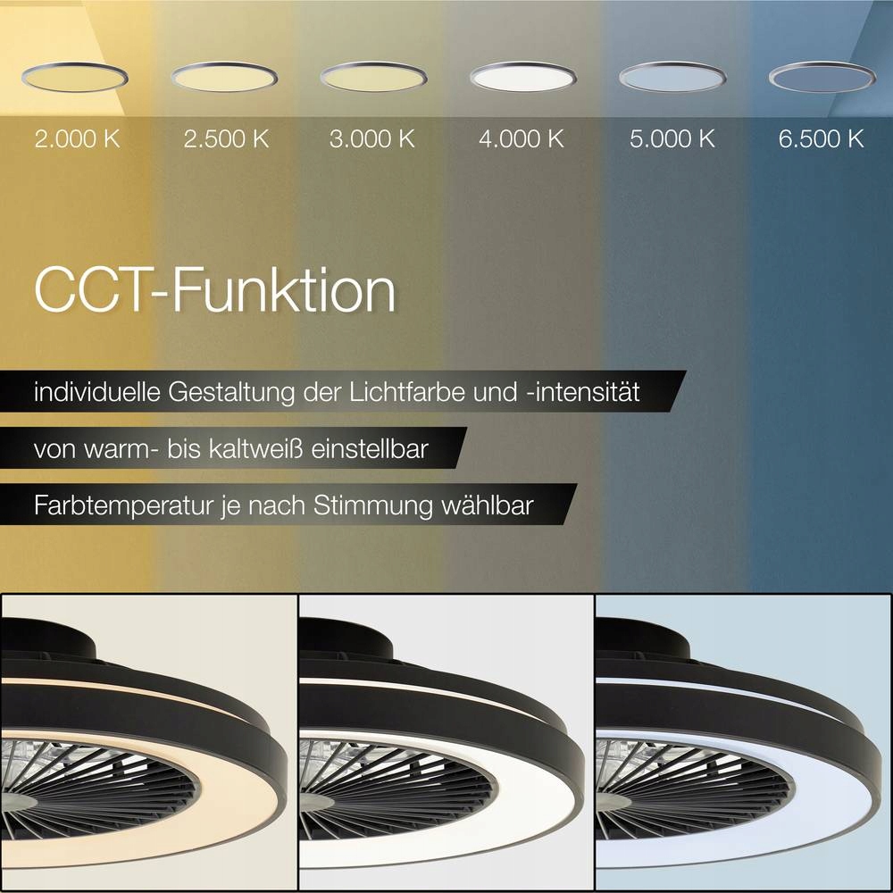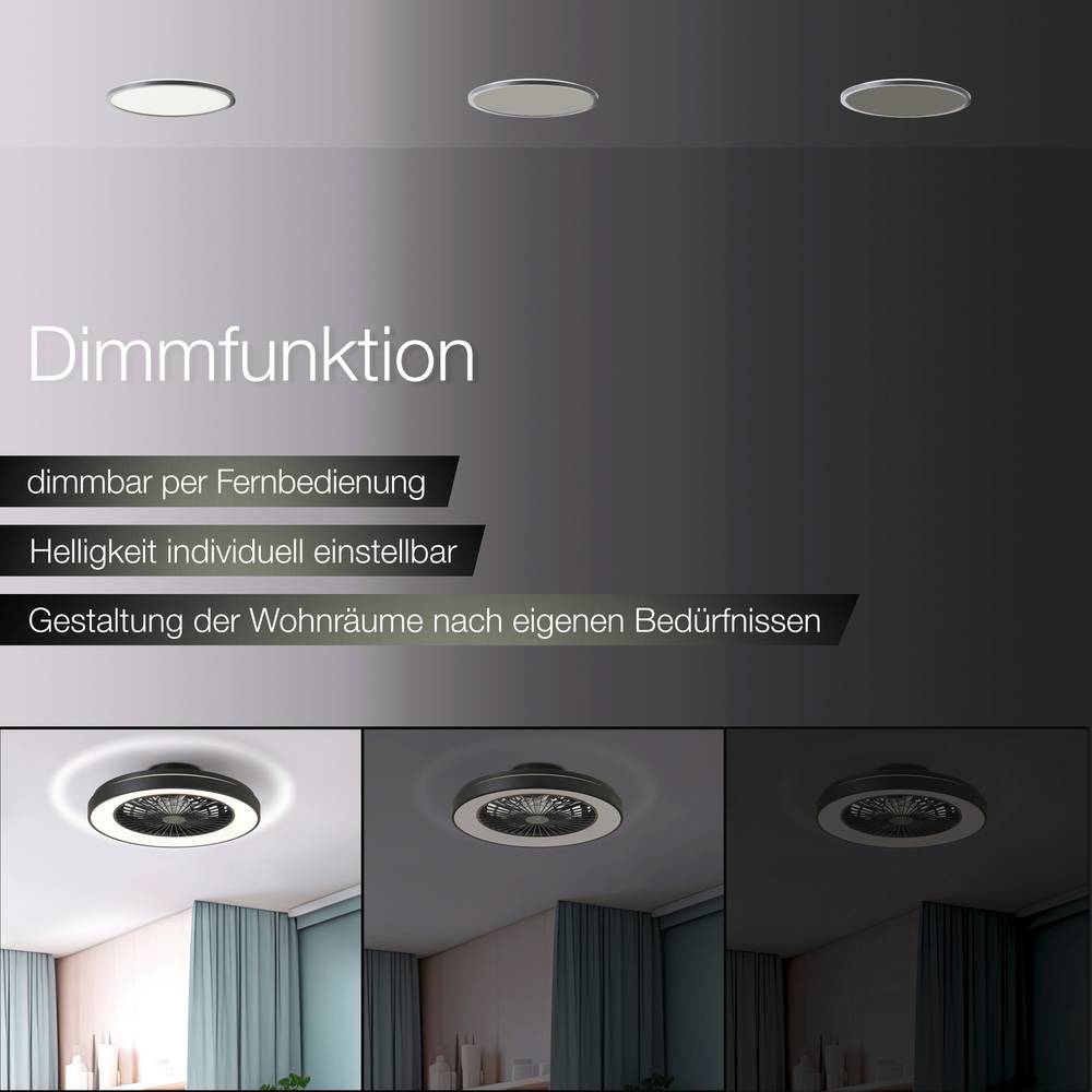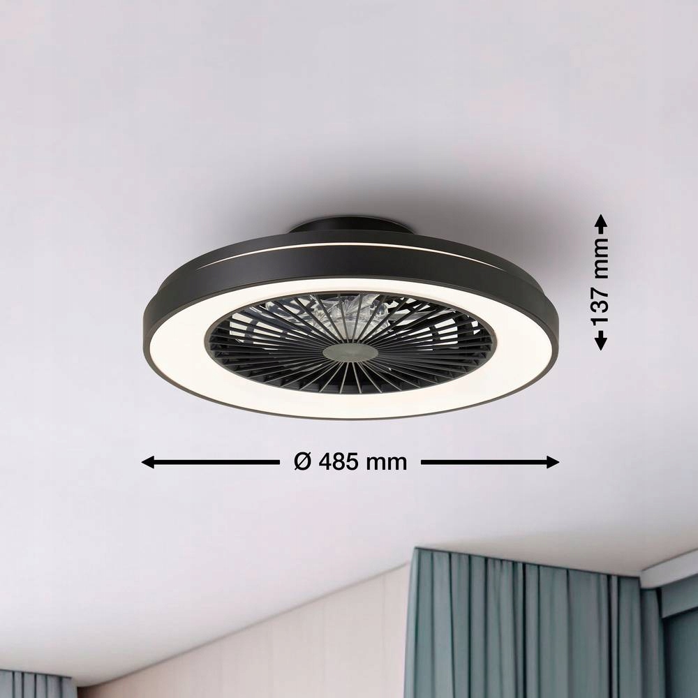 Dzięki dużej średnicy około 48,5 cm jest wystarczająca, aby przyjemnie i skutecznie oświetlić pomieszczenie. Zapewnia nie tylko przyjemną atmosferę oświetlenia, ale także praktyczny wentylator, zapewniający przyjemną świeżość i przyjemny klimat w pomieszczeniu.