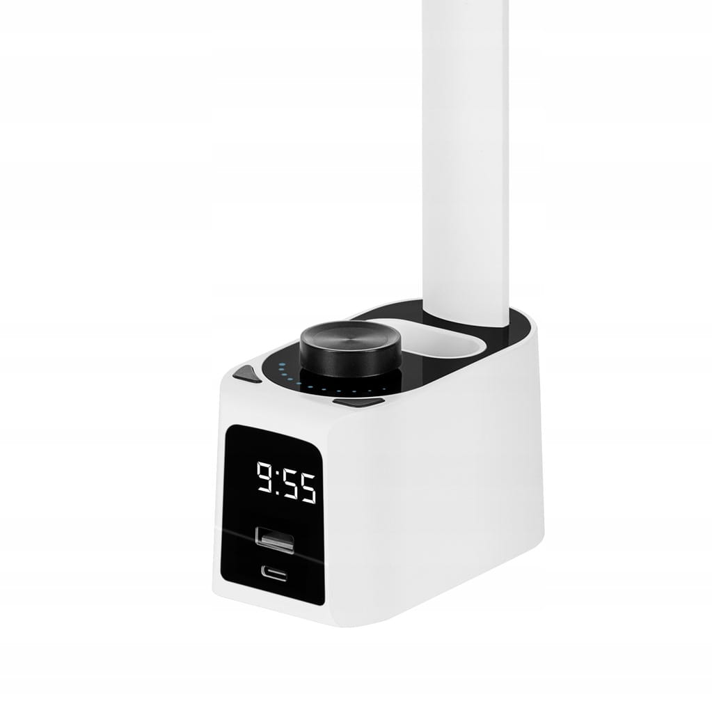 Lampka biurkowa lampa zegar reg intensywność barwa szybka ładowarka USB