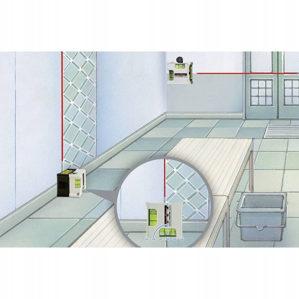Poręczny laser liniowy do szybkiego ustawiania na podłodze i na ścianach. Zastosowanie na wszystkich powierzchniach. Umożliwia tworzenie pochyłych płaszczyzn.
