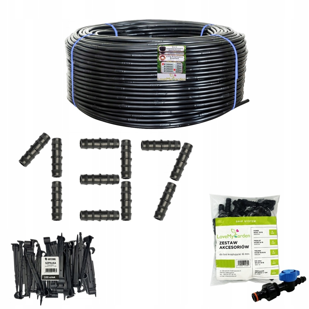 Linia kroplująca 16mm 100m z kompensacją 137 akcesoriów wąż kropelkowy XXL
