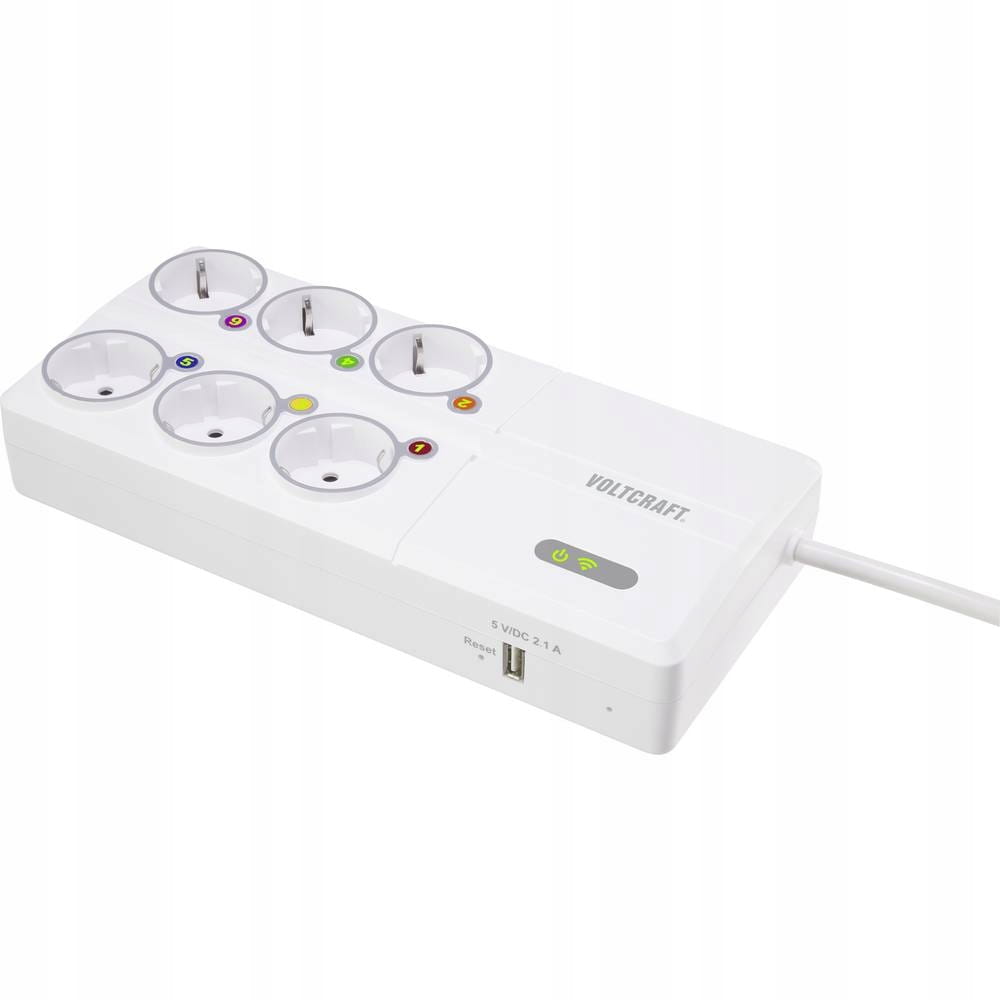 Listwa zasilająca z 6 gniazdami, modułem pomiaru mocy oraz zabezpieczeniem nadprądowym.