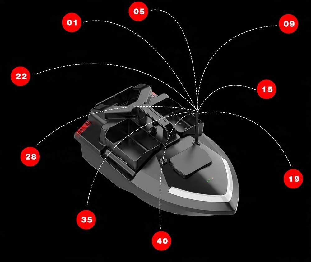 Gdy akumulator jest słaby, w łódce zapala się czerwone oświetlenie LED a kontroler wydaje dźwięk ostrzegawczy. Dzięki temu nie musisz się martwić o utratę zasięgu lub zasilania.