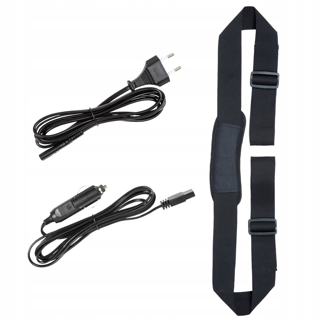 Lodówka turystyczna jest wyposażona w dużą torbę na akcesoria, takie jak dwa dołączone kable 230 V i 12 V.