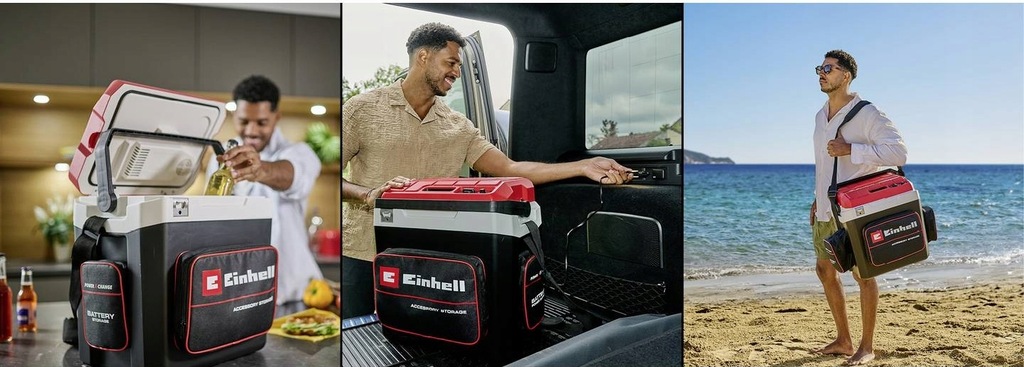 Bezprzewodowa lodówka Einhell jest niezastąpionym towarzyszem na co dzień. Niezależnie od tego, czy chodzi o chłodne napoje w lecie, czy ciepły posiłek w międzyczasie: Bezprzewodowa lodówka jest niezbędna podczas wycieczek w wolnym czasie, a także podczas zasłużonej przerwy na lunch na placu budowy.