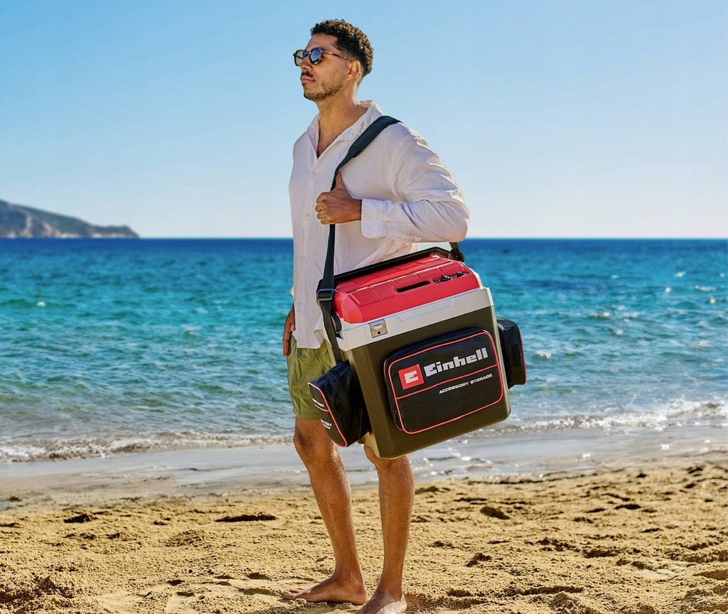 Funkcja utrzymywania ciepła może być regulowana do maksymalnie 60 °C. Aby ułatwić transport, chłodziarka jest wyposażona w regulowany pasek do przenoszenia z podkładką na ramię i duży uchwyt do przenoszenia, który w razie potrzeby może również przytrzymywać otwartą pokrywę chłodziarki. Chłodziarka akumulatorowa jest dostarczana bez akumulatora i ładowarki, które są dostępne osobno.