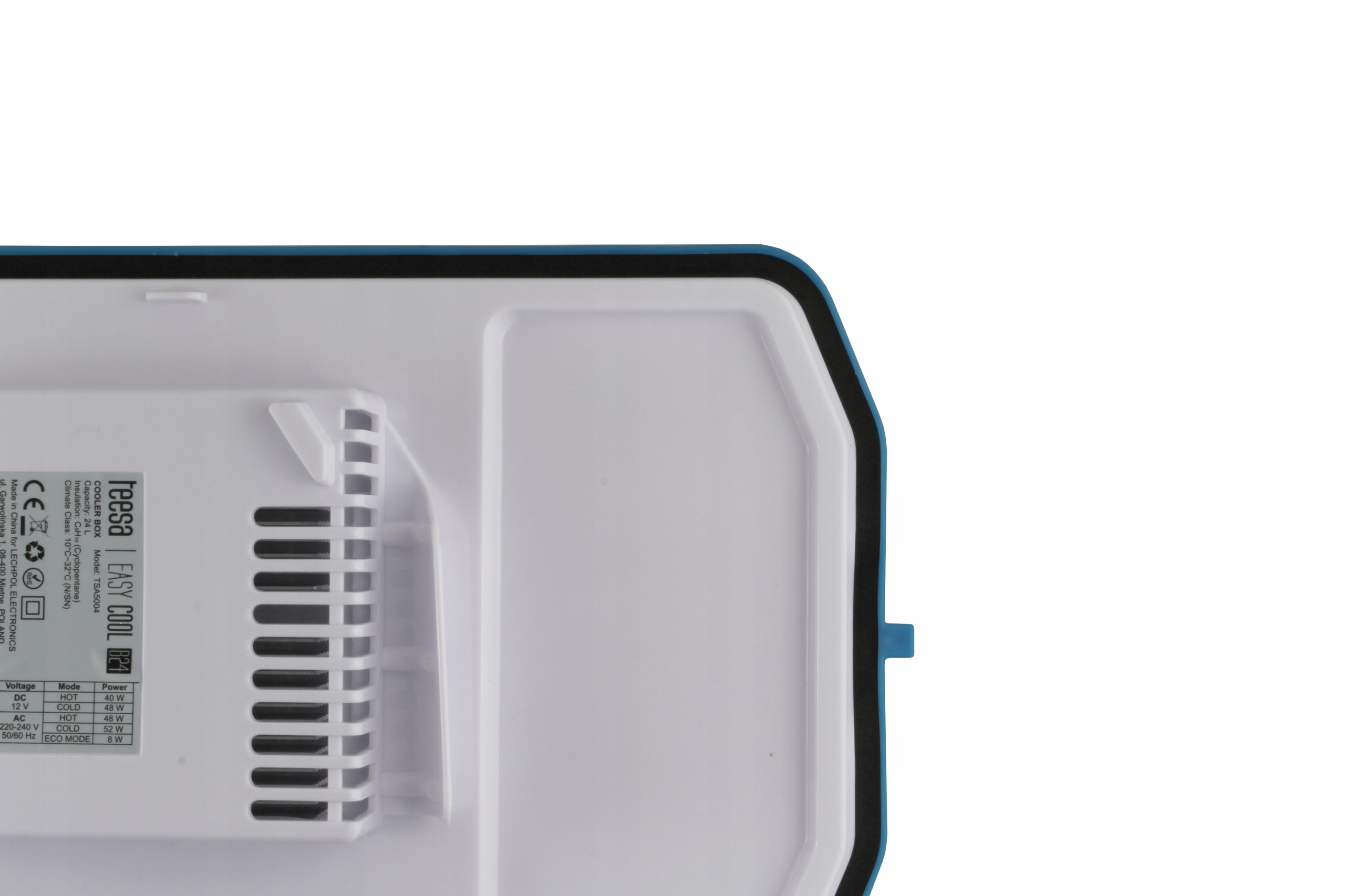 Lodówka turystyczna Teesa cechuje się solidnym wykonaniem, które zapewnia trwałość i odporność typowe dla podróży na warunki zewnętrzne. Bardzo solidne wykonie urządzenia dopełnia estetyczna obudowa w modnym odcieniu błękitu.