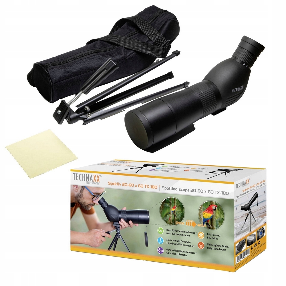 Luneta podróżna z ciągłym zakresem zoomu od 20x do 60x z obiektywem 60 mm zapewnia jasne obrazy nawet o zmierzchu.