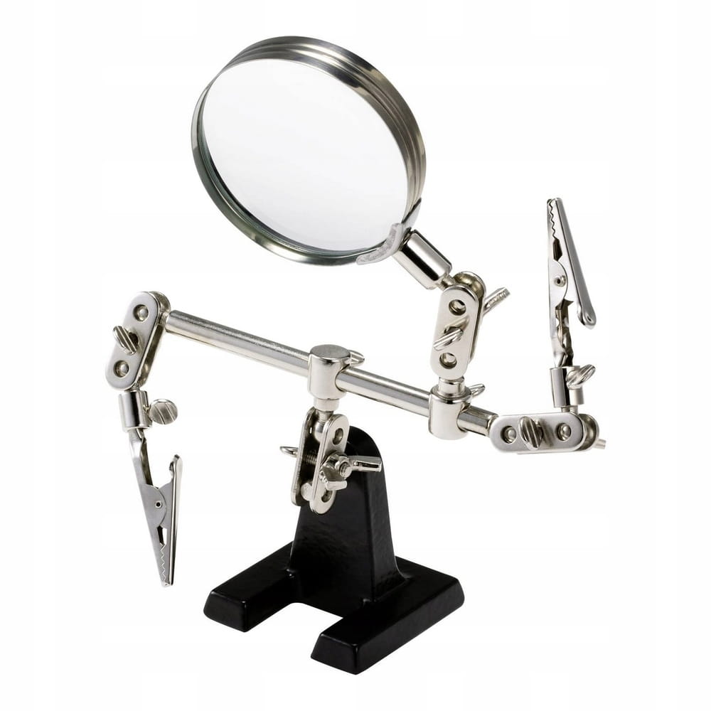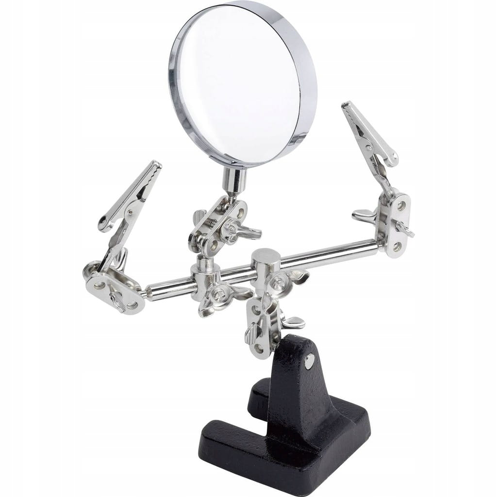 Użyteczne narzędzie pomocnicze do lutowania i modelarstwa. Produkt służy jako środek pomocniczy w pracach lutowniczych np. przy elektronicznych obwodach. Duża lupa dzięki dwukrotnemu powiększeniu umożliwia lutowanie małych części.