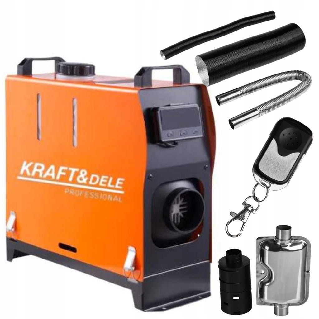 Najnowszej technologii nagrzewnica postojowa marki Kraft&Dele na olej napędowy. Posiada wewnętrzną komorę spalania, dzięki czemu spaliny nie wydostają się na zewnątrz. Dodatkowo nie podnosi poziomu wilgoci, co pozwala nam używać jej w pojazdach, przyczepach kempingowych itp.