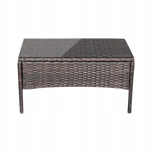 Zestaw mebli ogrodowych dopełnia stolik z technorattanu. Posiada on solidną konstrukcję i wystarczająco dużą powierzchnię, aby pomieścić napoje, przekąski czy dekoracje. Możesz swobodnie korzystać z niego podczas kawy z przyjaciółką, czy rodzinnego podwieczorku.