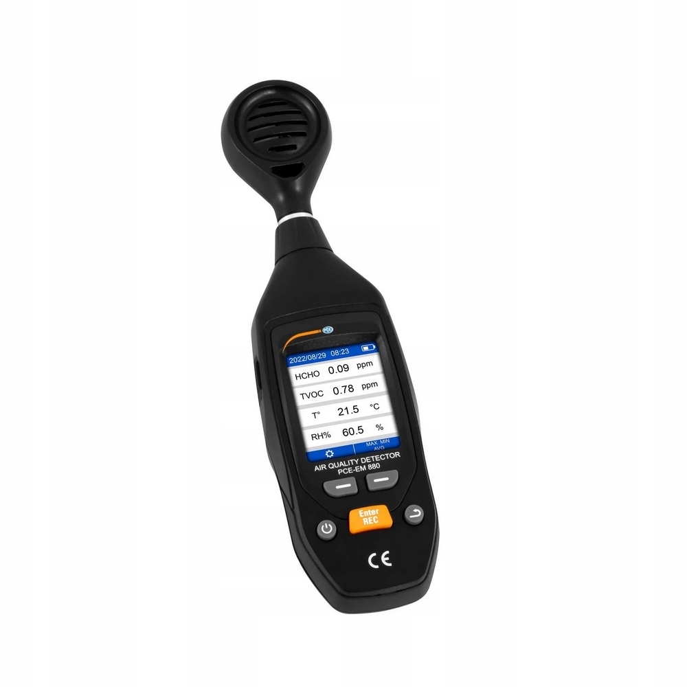 Zakres pomiarowy dla pomiaru TVOC wynosi 0,00 … 9,99 mg/m³. Dzięki dokładności ±5% zakresu pomiarowego dla pomiarów HCHO i TVOC miernik jakości powietrza jest idealnym narzędziem pomiarowym.
