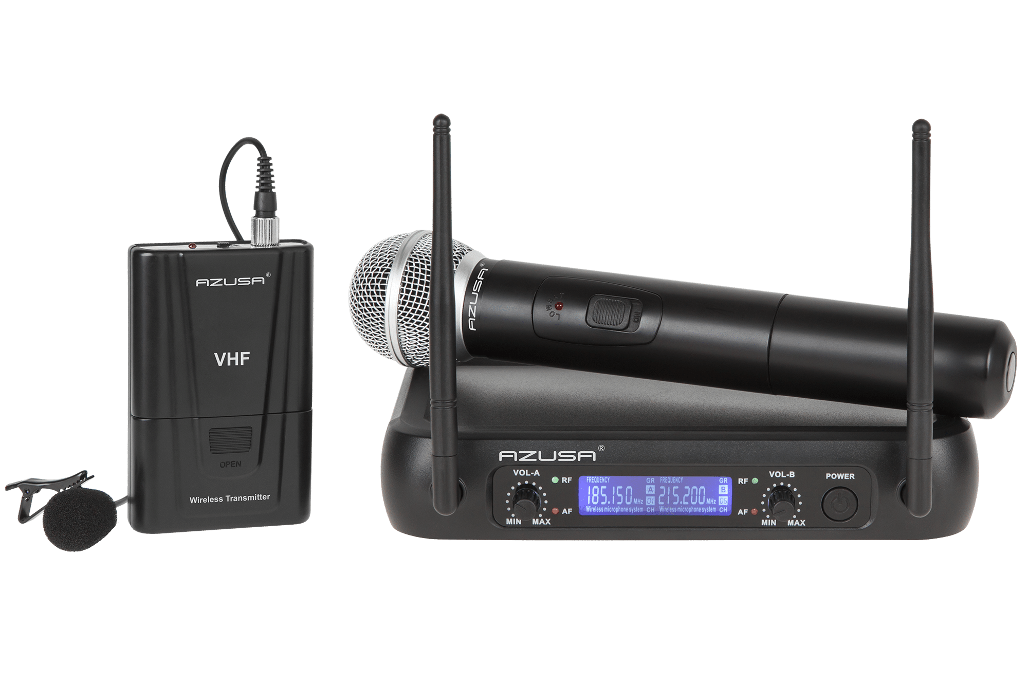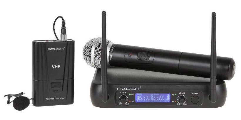 Mikrofon bezprzewodowy na KLIP 2 Kanały VH 2 mikrofony Azusa