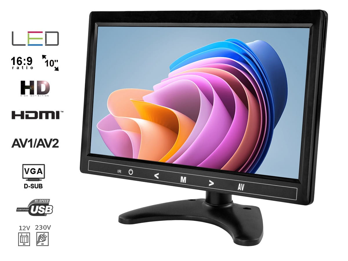 Monitor samochodowy 10'' HD HDMI VGA AV 12V 230V