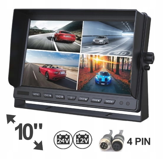Monitor 10'' na 4 KAMERY 4 PIN 12-24V