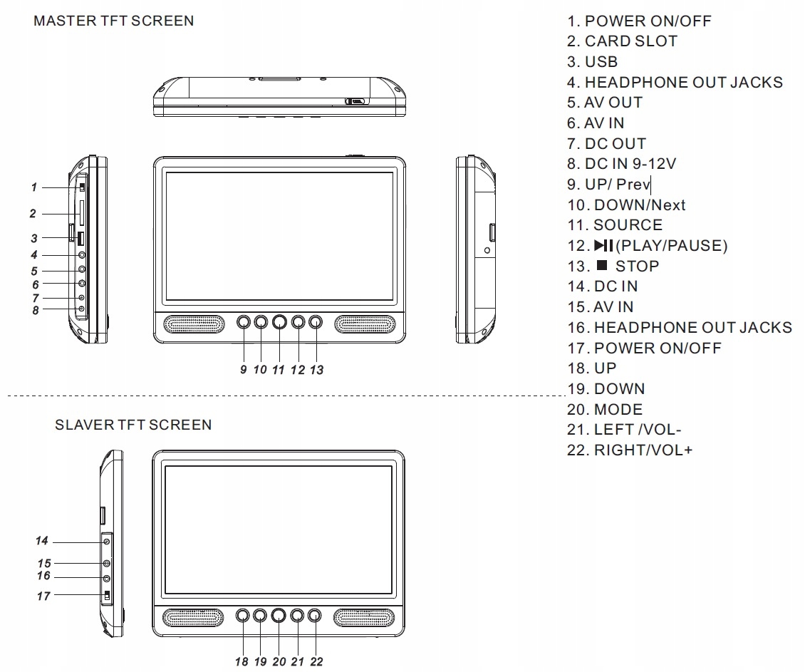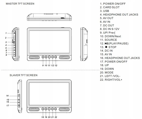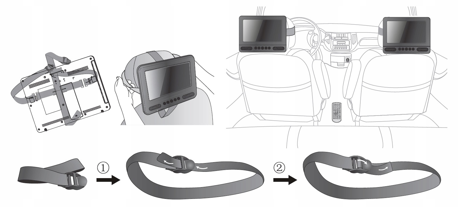 - Rodzaj produktu: odtwarzacz DVD na zagłówek z 2 monitorami