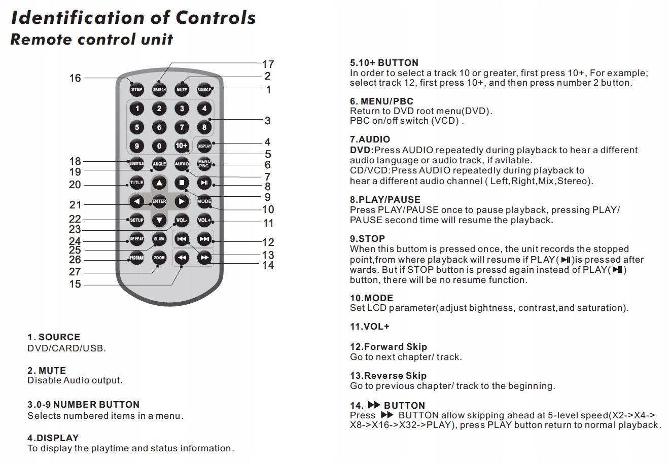 - Odtwarzane formaty: DVD / DVD+R / DVD-R / CD / CD-R / CD-RW / SVCD / CD-DA / JPEG / DIVX3.11/4.X/5.X / WMA