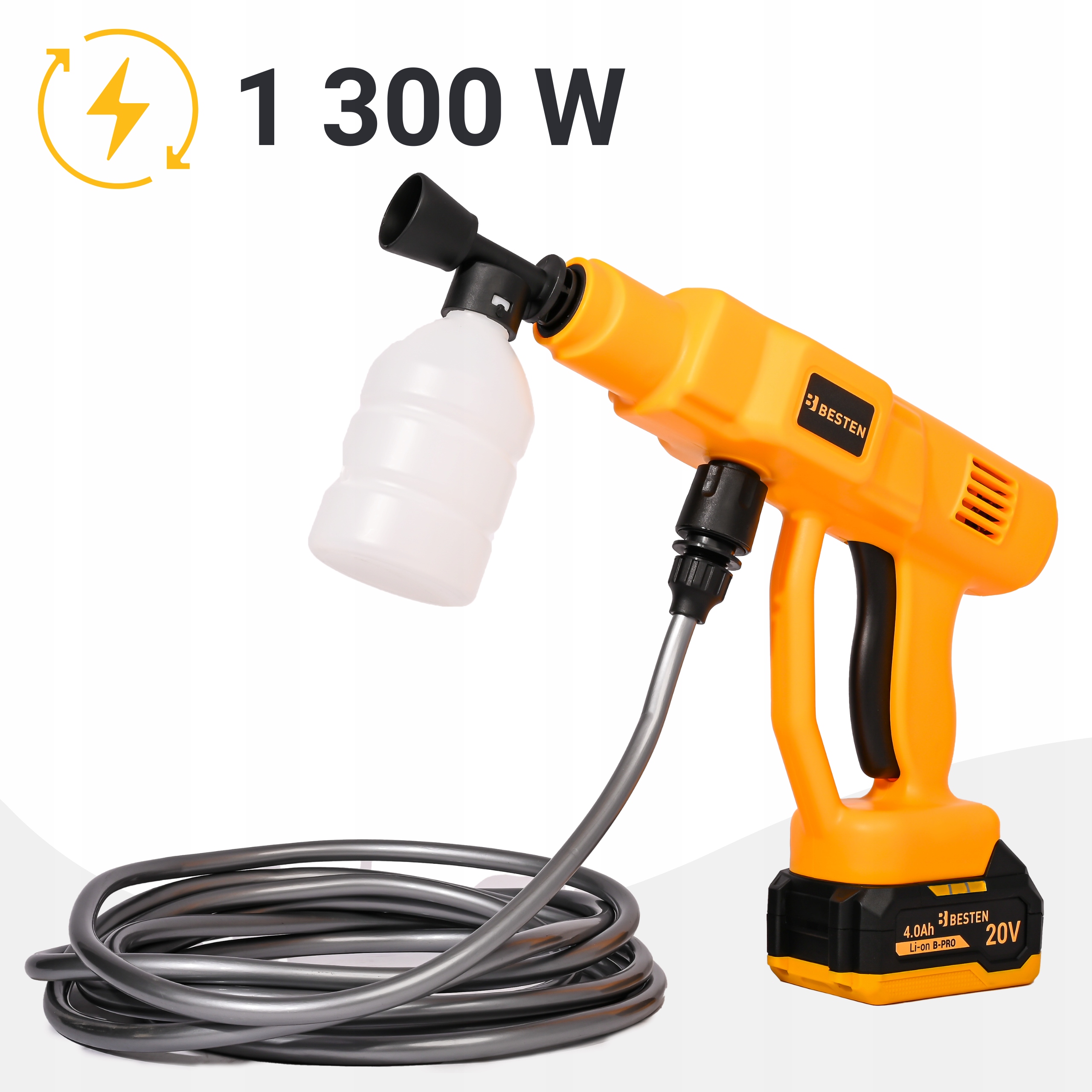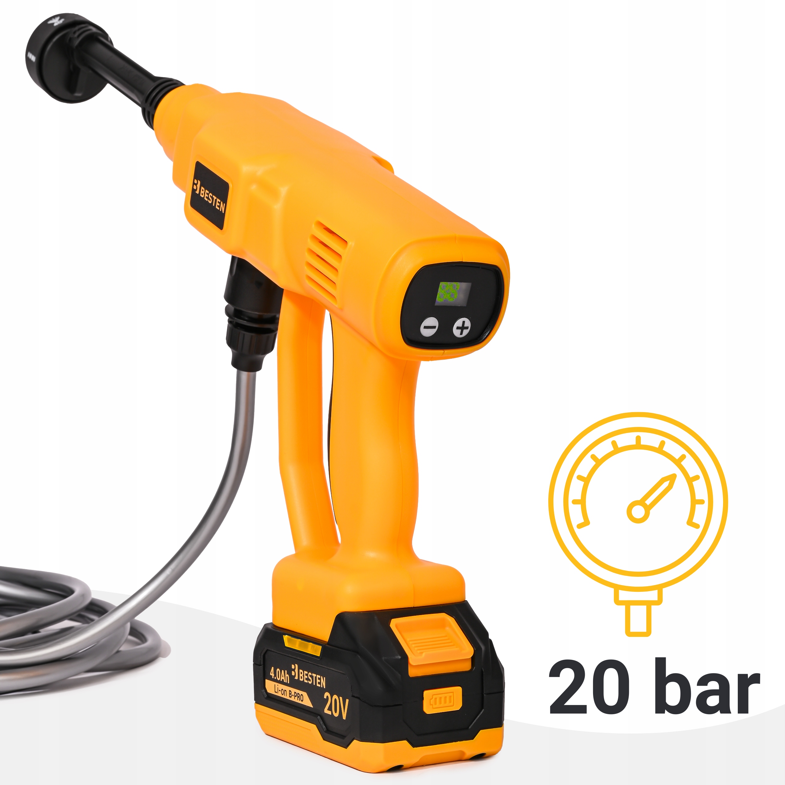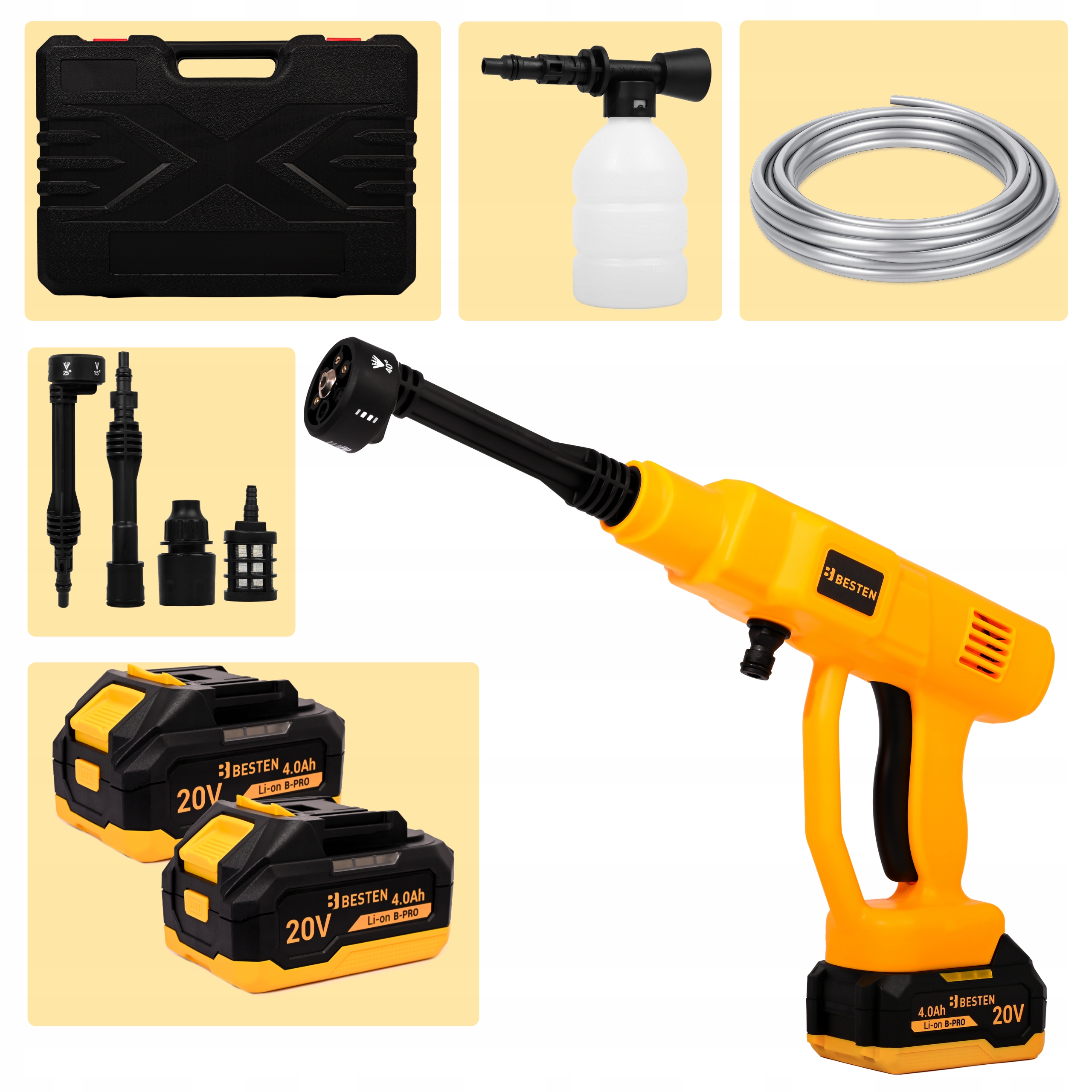 Myjka ciśnieniową akumulatorowa BESTEN to połączenie realnej siły czyszczenia, pełnej swobody pracy i kompletnego zestawu, gotowego do działania od razu po rozpakowaniu.