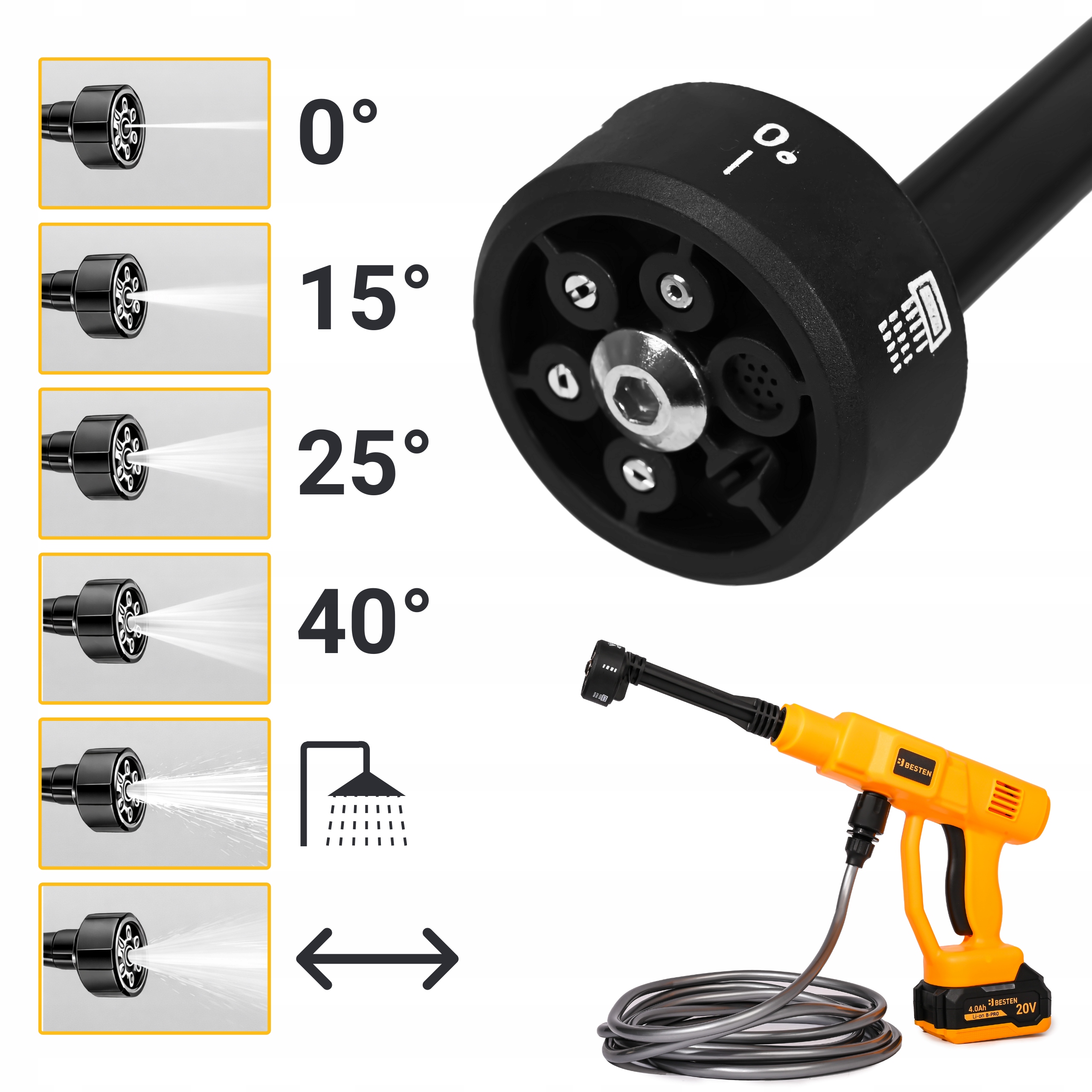 AKUMULATOROWA | 20 BAR | 2× AKUMULATOR 21V 4Ah | 3 TRYBY CIŚNIENIA | MULTIFUNKCYJNA DYSZA 6w1 | ZASYSANIE WODY | POJEMNIK NA DETERGENT | MOBILNA I LEKKA