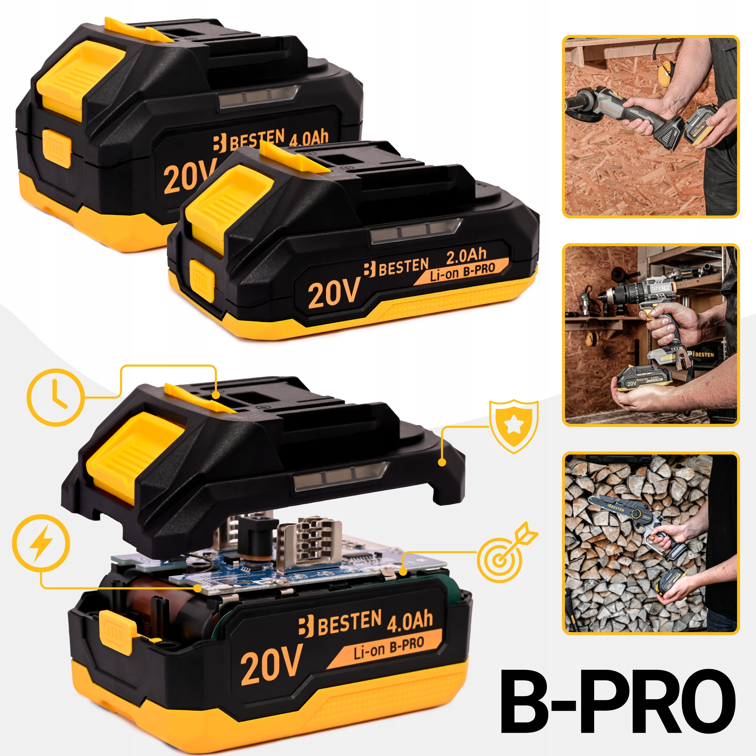 Jeden system B-PRO = jedna bateria do wielu narzędzi BESTEN.
