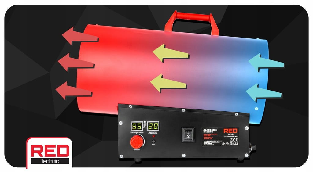 NAGRZEWNICA GAZOWA DMUCHAWA TERMOSTAT LCD DUŻA MOC 45 KW + WĄŻ REDUKTOR