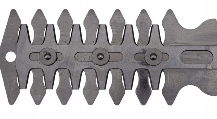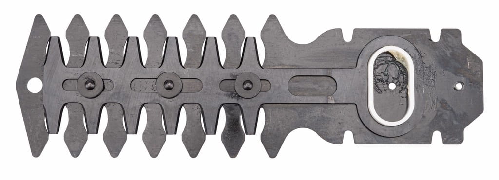 W zestawie znajduje się ostrze do przycinania trawy o szerokości 83 mm oraz ostrze do przycinania krzewów o długości 120 mm oraz odstępie między zębami 6 mm. Zmiana ostrza odbywa się za pomocą systemu beznarzędziowego, co pozwala na szybką zmianę nożyc do trawy na nożyce do krzewów. Zastosowanie dwóch ostrzy pozwala na dokładne formowanie krawędzi trawnika oraz drobnych krzewów.
