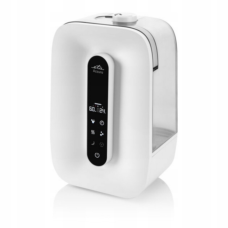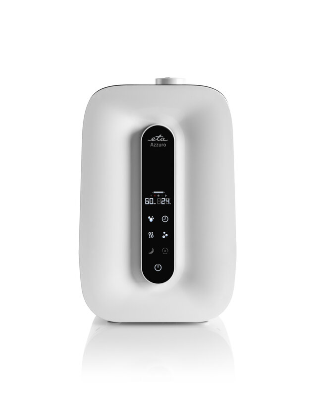 Nawilżacz ultradźwiękowy ETA Azzuro z automatyczną kontrolą wilgotności, gorącą i zimną parą, czasem pracy do 30 godzin.