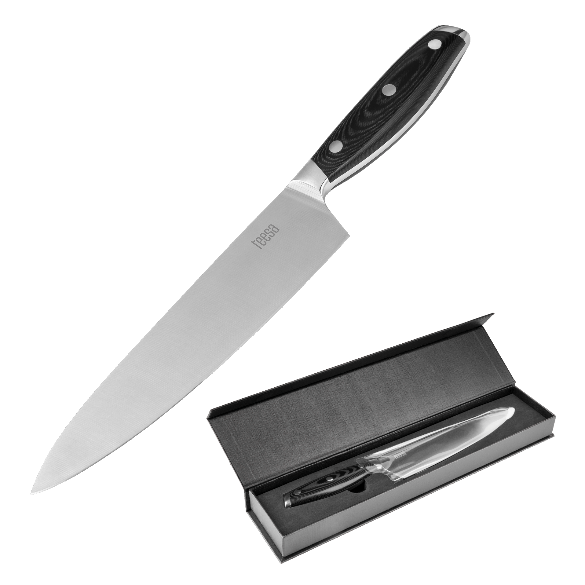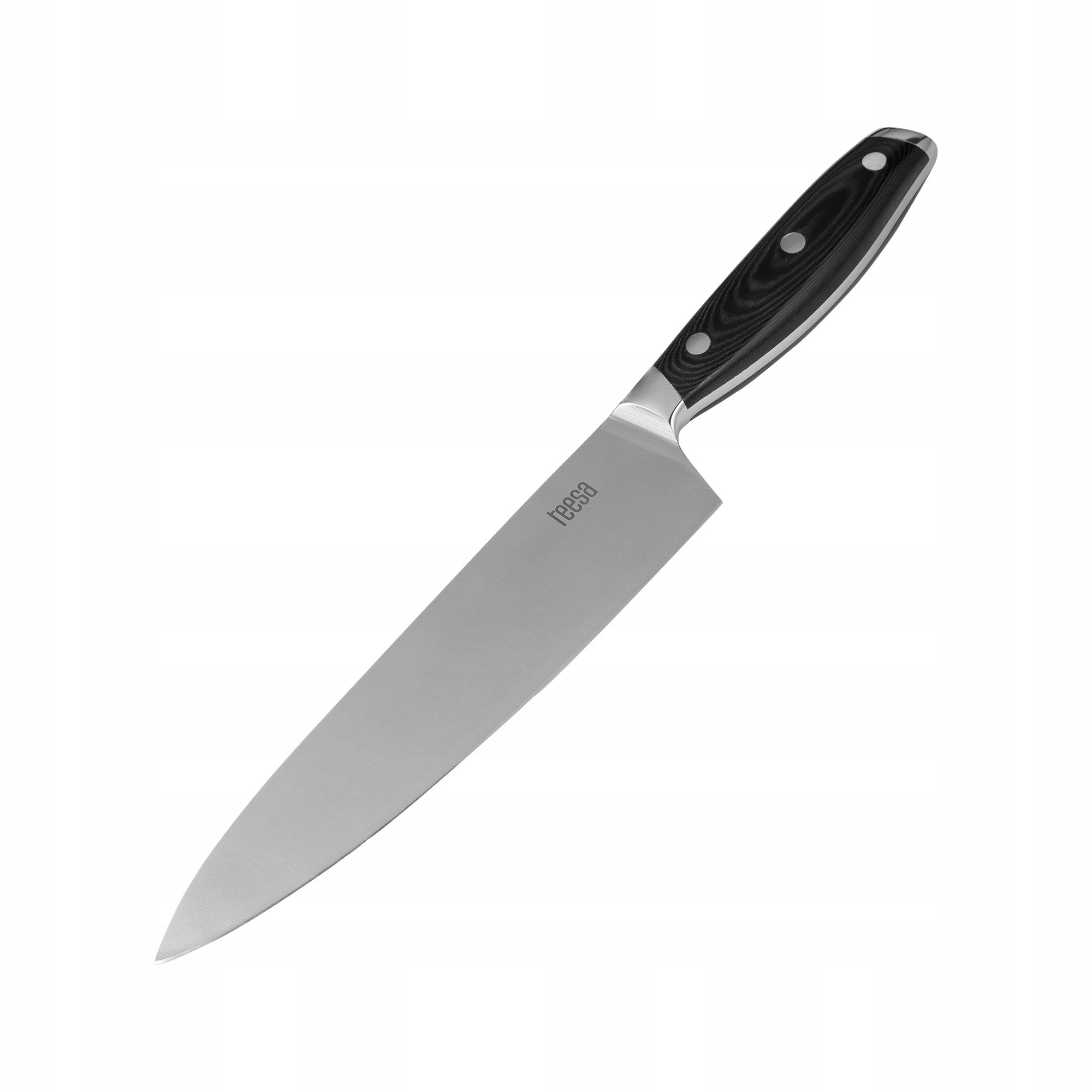 Nóż szefa kuchni Teesa został wykonany z wysokiej jakości stali nierdzewnej, dzięki czemu wyróżnia się dużą wytrzymałością, ostrością oraz odpornością na korozję. Możesz mieć pewność, że to akcesorium będzie służyło Ci przez lata. Zwróć też uwagę na ergonomiczną rękojeść, która sprawia, że nóż jest bardzo wygodny w użyciu i pewnie leży w dłoni.