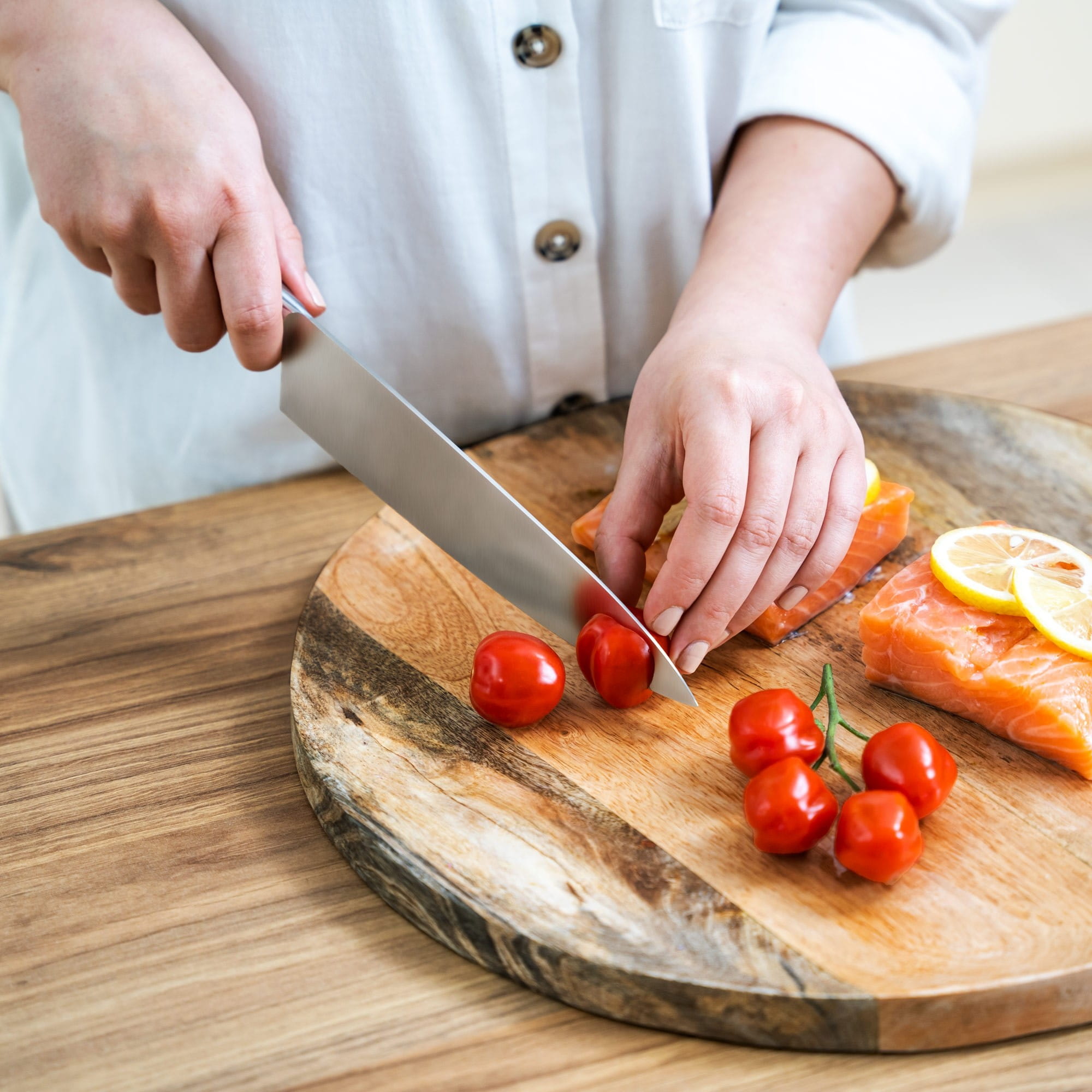 Lubisz zaskakiwać rodzinę i znajomych nowymi potrawami? Dobry nóż szefa kuchni to absolutny niezbędnik w Twojej kuchni. Charakterystyczne dla tego typu noży kuchennych jest długie, szerokie i doskonale wyprofilowane ostrze, które sprawia, że są one bardzo uniwersalne. Z łatwością pokroisz zarówno mięsa, ryby, jak też warzywa czy zioła.