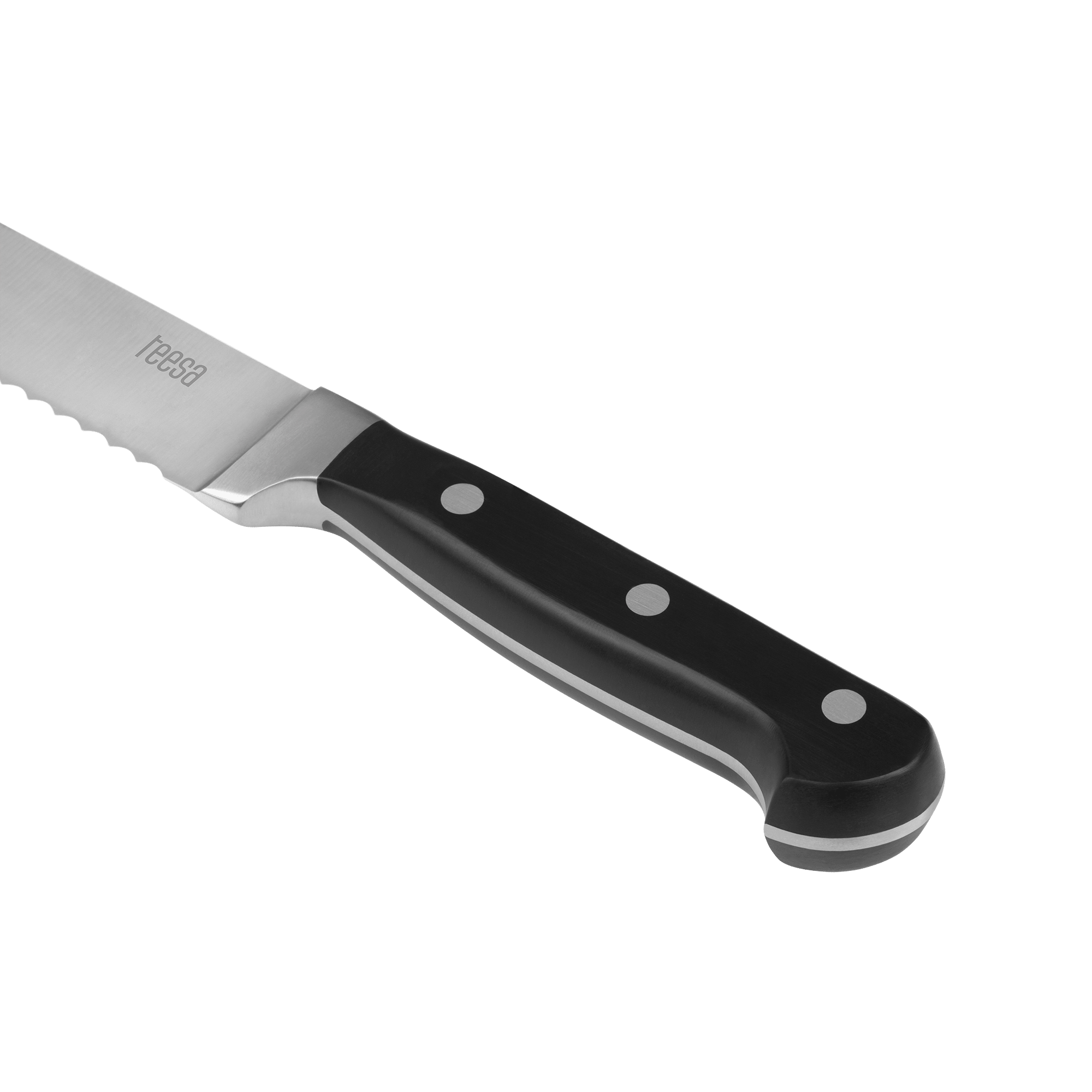 Zaczynasz dzień od przygotowania śniadania z chrupiących bułek, albo chleba? Nóż do pieczywa Teesa to akcesorium niezbędne w Twojej kuchni. Ząbkowane ostrze, w połączeniu z optymalnie wyważonym ciężarem i ergonomiczną rękojeścią, sprawiają, że nóż doskonale sprawdzi się zarówno przy krojeniu świeżych i miękkich bułeczek, jak też bardziej twardego i czerstwego pieczywa.