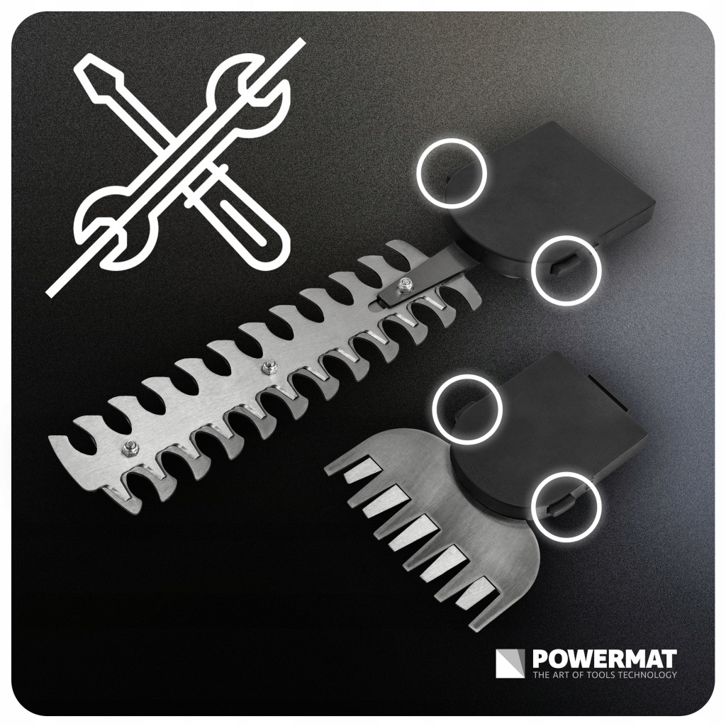 Beznarzędziowa wymiana ostrzy pozwala szybko przejść z cięcia trawy do przycinania krzewów bez przerywania pracy.