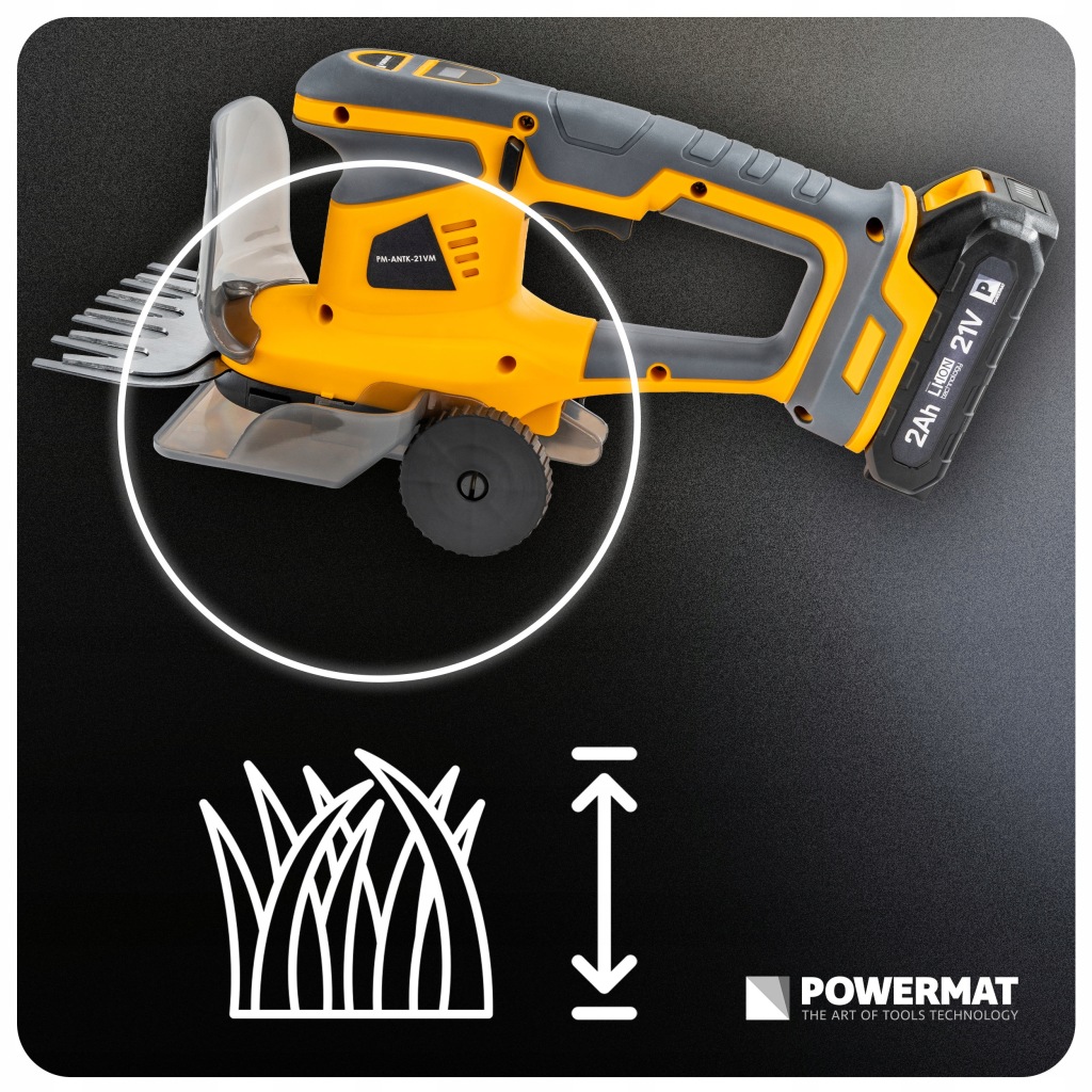 Silnik zasilany akumulatorem 21V zapewnia stabilną pracę i wygodne przycinanie bez kabla. Dzięki pojemności 2Ah pracujesz dłużej bez częstego ładowania.