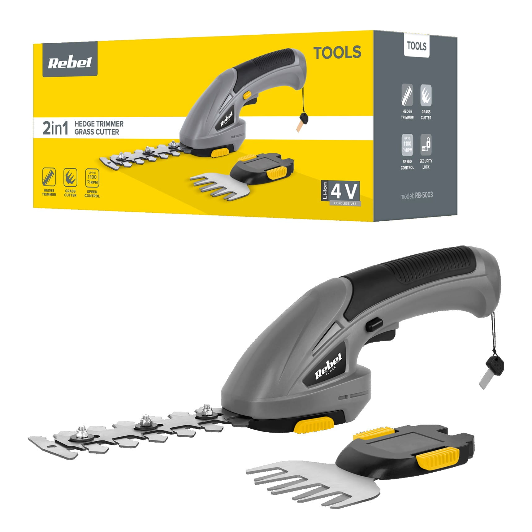 Nie musisz też zastanawiać się jakie nożyce do trawy wybrać. W zestawie znajdziesz dedykowaną nasadkę, którą szybko wymienisz, bez konieczności użycia dodatkowych narzędzi. Nóż do trawy Rebel Tools pomoże Ci precyzyjnie dociąć źdźbła przy schodach lub drzewach, a także wyrównać brzegi trawnika tam, gdzie kosiarka mogłaby uszkodzić rośliny, np. na obrzeżach rabat.