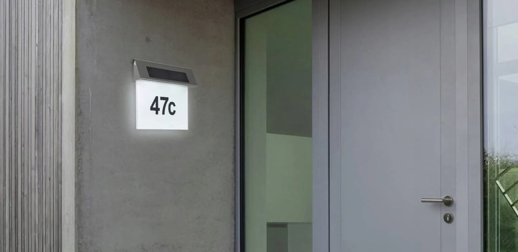 Akumulator jest ładowany w ciągu dnia promieniowaniem słonecznym, a następnie ponownie uwalnia zmagazynowaną energię poprzez lampę. Doskonała widoczność numeru budynku w ciemności.
