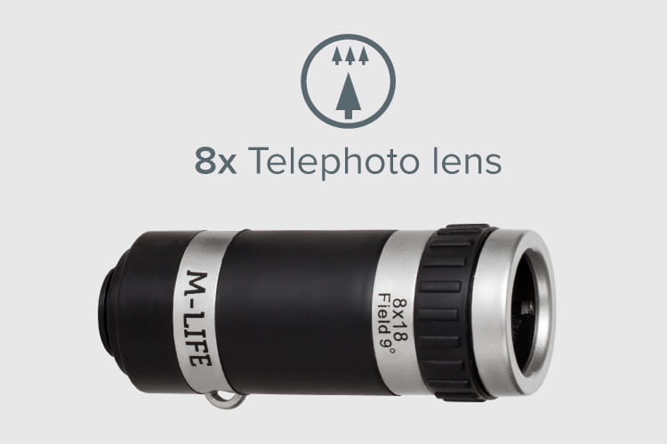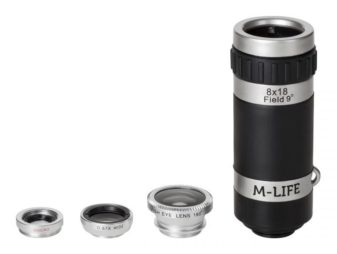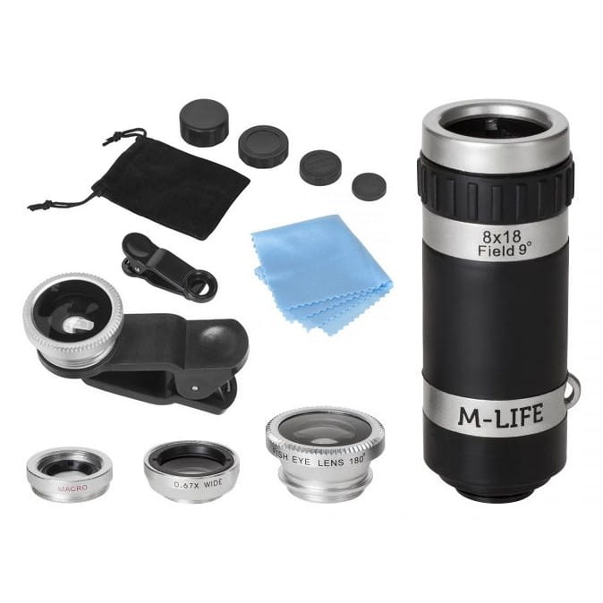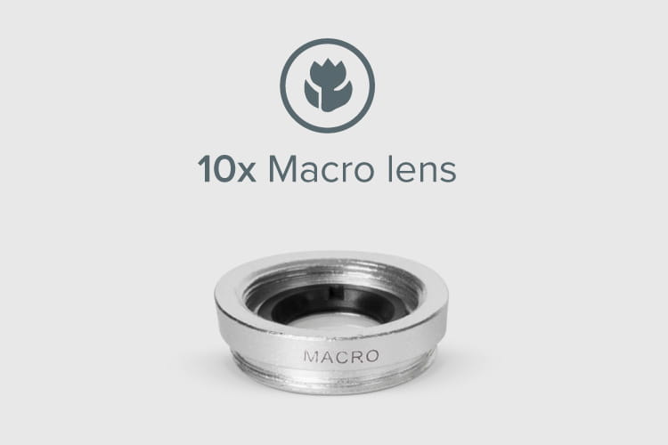 Jednym z elementów zestawu jest obiektyw typu rybie oko, który poszerza i uwypukla obraz bez ciemnego kręgu. Obejmując większy obszar o powiększeniu 0.33X zdjęcia zyskują oryginalny wymiar. Obiektyw macro zapewnia 10-krotne powiększenie, co pozwala na robienie ostrych, wyraźnych zdjęć z bliskiej odległości. Idealnie nada się, jeśli chcesz uchwycić drobny szczegół, zachowując dobą jakość zdjęcia.