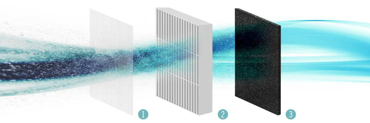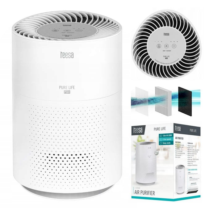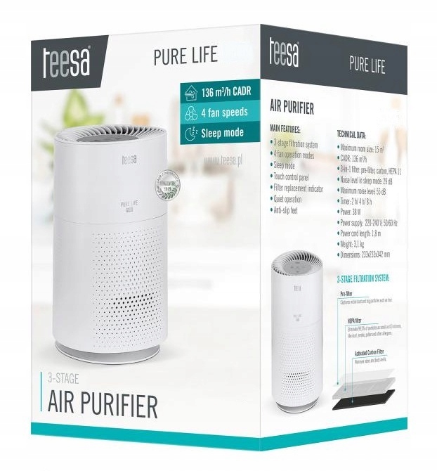 W oczyszczaczu Teesa zastosowano 3-stopniowy system filtracji. Filtr wstępny usuwa większe zanieczyszczenia, np. kurz czy sierść, filtr HEPA 11 usuwa do 99,5% cząstek takich jak pyłki i inne alergeny, natomiast filtr węglowy pochłania szkodliwe gazy i usuwa nieprzyjemne zapachy.