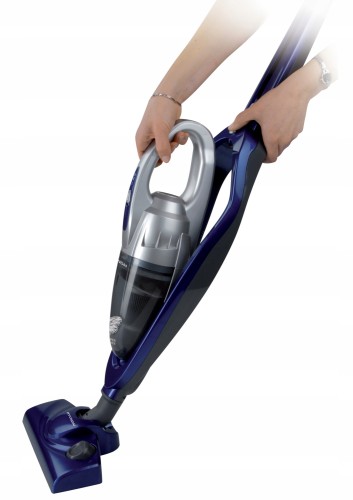 Odkurzacz jest bezworkowy, wszystkie zanieczyszczenia zbiera się w naczyniu zbiorczym o objętości 0,5 litra. Bardzo skuteczny filtr HEPA zapewniający filtrację. Odkurzacz pionowy nie zajmuje dużo miejsca, ponieważ może on być umieszczony w pozycji parkującej, aby nie przeszkadzał. Posiada składany uchwyt do wygodnego przechowywania. Wyjątkowo długi przewód 7 metrów pozwala na zasięg 8 m.