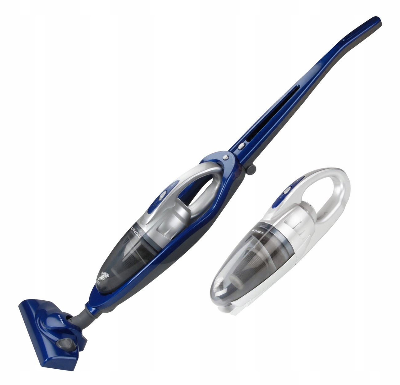 Odkurzacz Hyundai w kolorze niebiesko-srebrnym to poręczny odkurzacz pionowy 2w1, z możliwością wykorzystania jako ręczny lub stojący. Jest idealny do czyszczenia wszystkich rodzajów podłóg, w tym trudno dostępnych miejsc i bez problemu radzi sobie odkurzając okruchy z blatu stołu lub szafek kuchennych. Jest lekki, kompaktowy i zawsze pod ręką do szybkiego użycia.