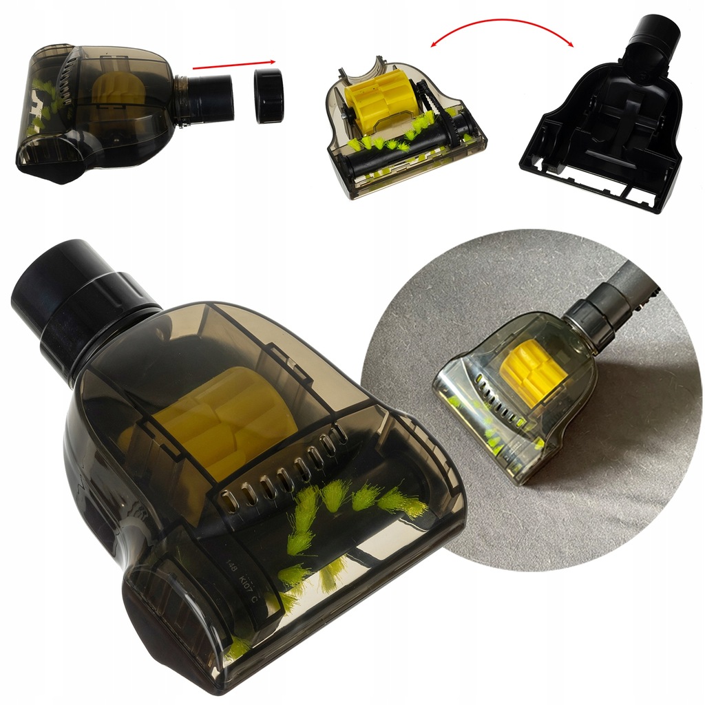 Końcówka Turbo to idealne rozwiązanie do czyszczenia powierzchni dywanowych. Dzięki obrotowemu wałkowi z syntetycznymi elementami zbierającymi, skutecznie usuwa sierść zwierząt, kurz i uporczywe zabrudzenia, zapewniając dokładne i efektywne sprzątanie. Otwierana konstrukcja ułatwia czyszczenie wałka, co zwiększa wygodę użytkowania i wydłuża żywotność końcówki.