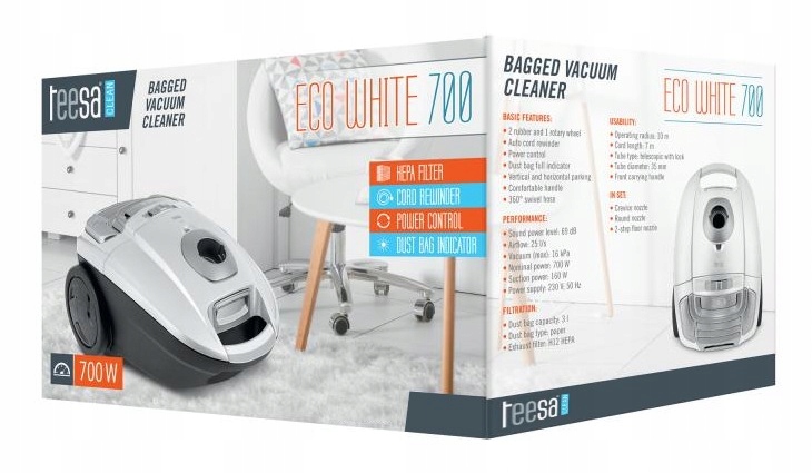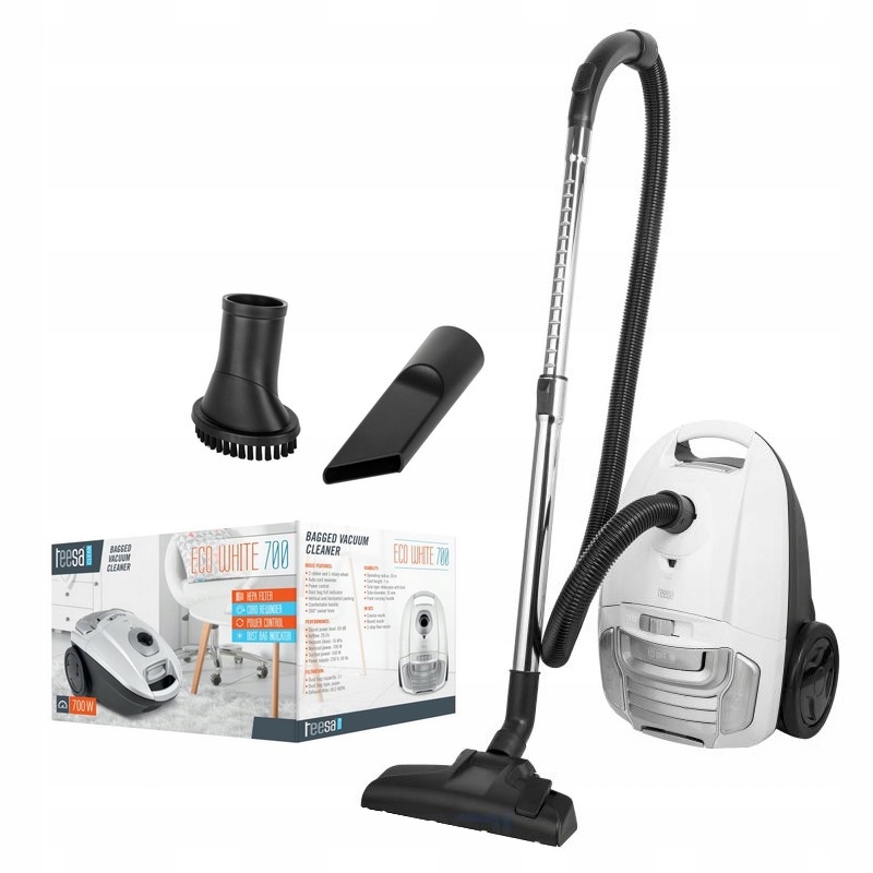 Odkurzacz Teesa Eco White z wysokiej jakości filtrem HEPA H12, silnikiem ECO i wszechstronnymi akcesoriami to doskonały wybór do Twojego domu.