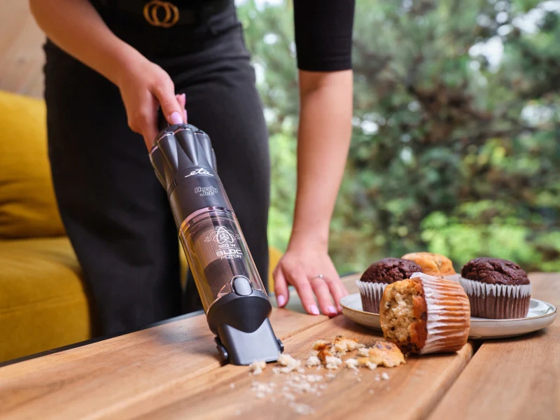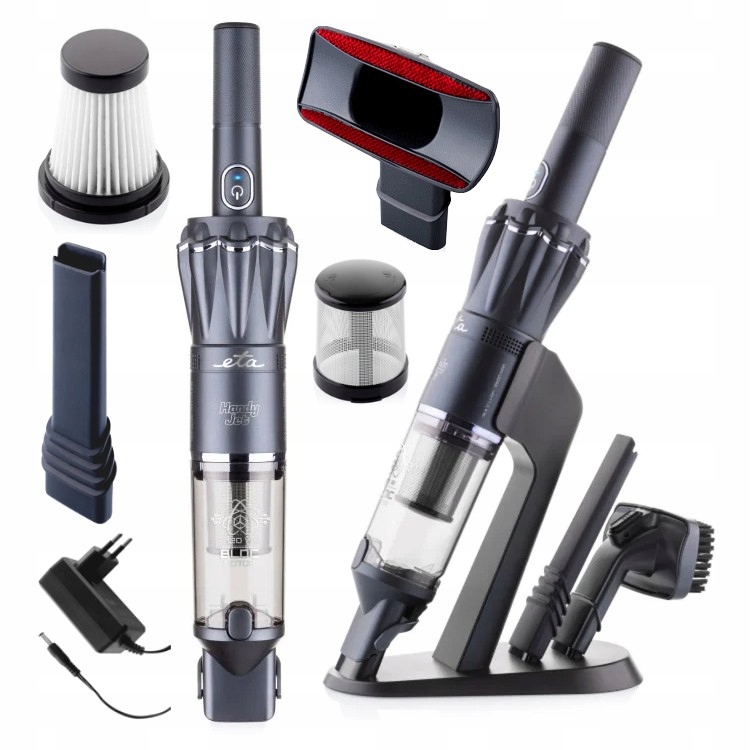 Ręczny odkurzacz ETA Handy Jet to doskonały pomocnik do szybkiego sprzątania bez wysiłku. Dzięki wyjątkowo niskiej wadze – zaledwie 0,5 kg – jest bardzo wygodny w użyciu, niezależnie od tego, czy sprzątasz okruchy po dziecięcym śniadaniu, sierść zwierząt, czy kurz w samochodzie. Kompaktowy rozmiar pozwala dotrzeć nawet do trudno dostępnych zakamarków. Konserwacja jest równie łatwa jak sprzątanie – pojemnik na kurz o objętości 0,1 litra opróżnisz jednym naciśnięciem przycisku. Wysokiej jakości filtr HEPA z metalowym filtrem wejściowym dba o czyste powietrze podczas codziennego użytkowania.