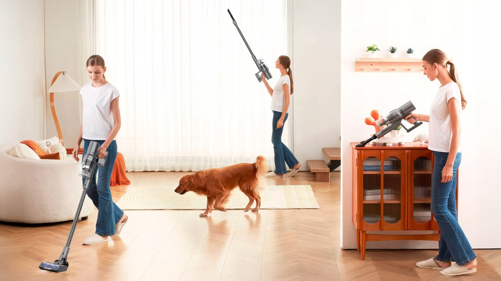 Lekka konstrukcja, zwrotna elektroszczotka i bezprzewodowa praca umożliwiają szybkie sprzątanie każdego pomieszczenia. Odkurzacz doskonale sprawdzi się przy czyszczeniu podłóg, szafek, półek, tapicerki czy przestrzeni biurowych. Brak kabla daje pełną swobodę ruchu i oszczędza czas podczas codziennych porządków.