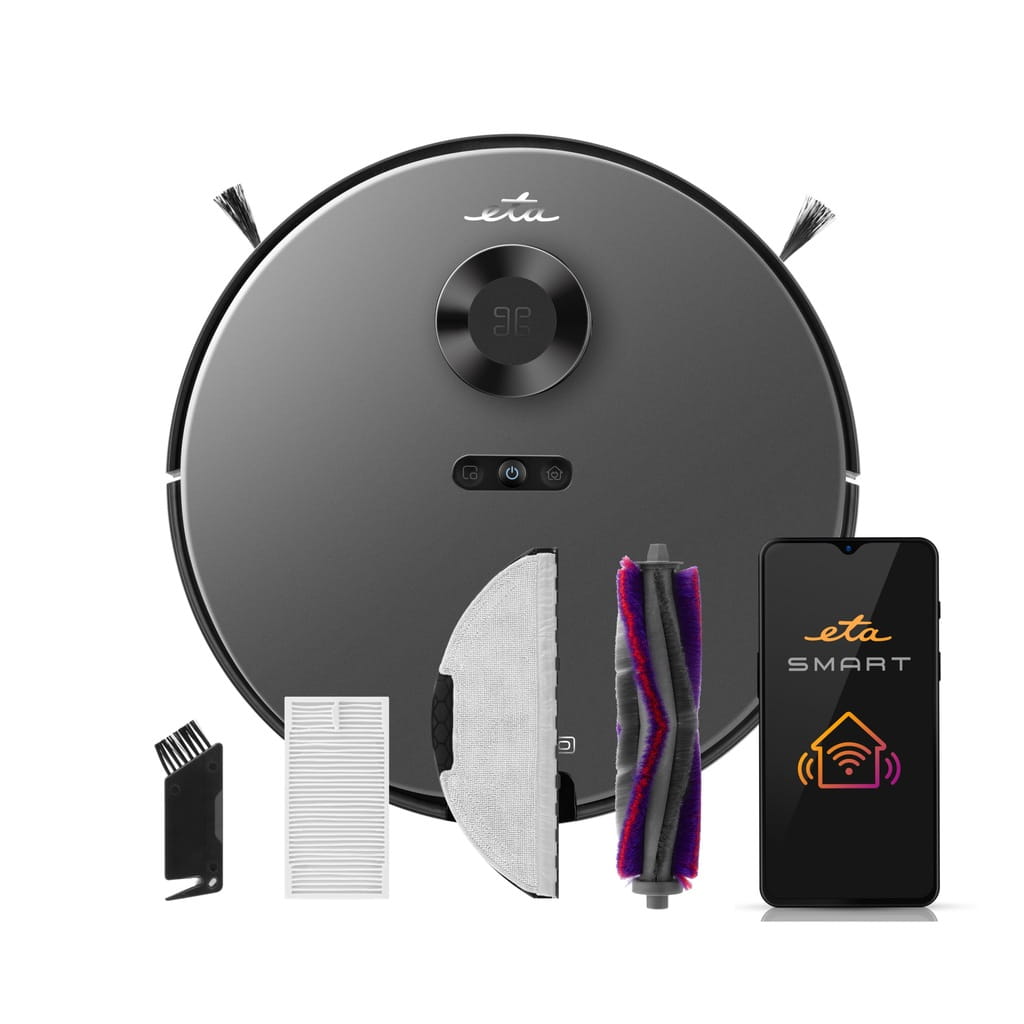 Odkurzacz łatwo sparujesz z telefonem komórkowym za pomocą swojej sieci Wi-Fi. Aplikacja ETA SMART jest dostępna do pobrania za darmo z Google Play lub App Store i jest kompatybilna z systemami Android 6.0 (i nowszymi) oraz iOS 11.0 (i nowszymi).